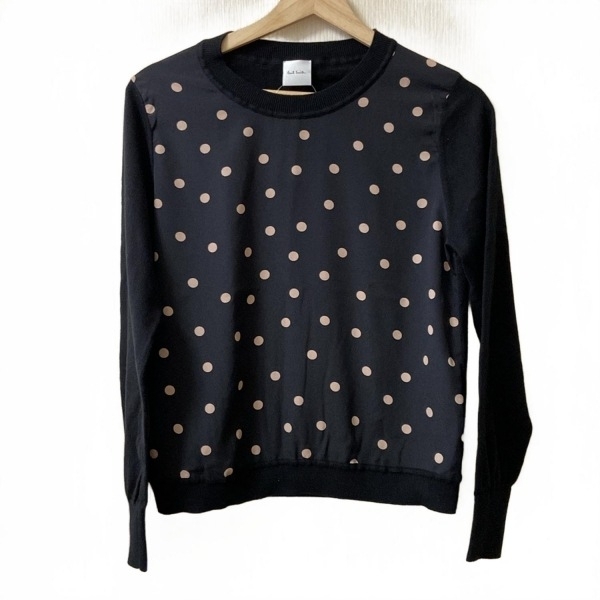 ポールスミス PaulSmith 長袖セーター/ニット サイズM - 黒×ベージュ レディース 異素材切替/ドット柄 トップス