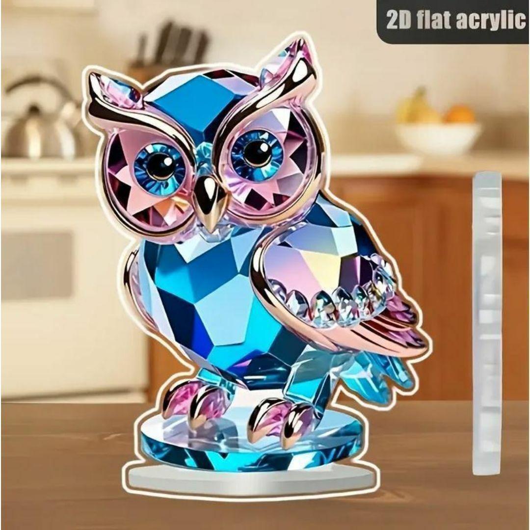 キラキラ宝石デコレーションされたフクロウのアクリルスタンドです。