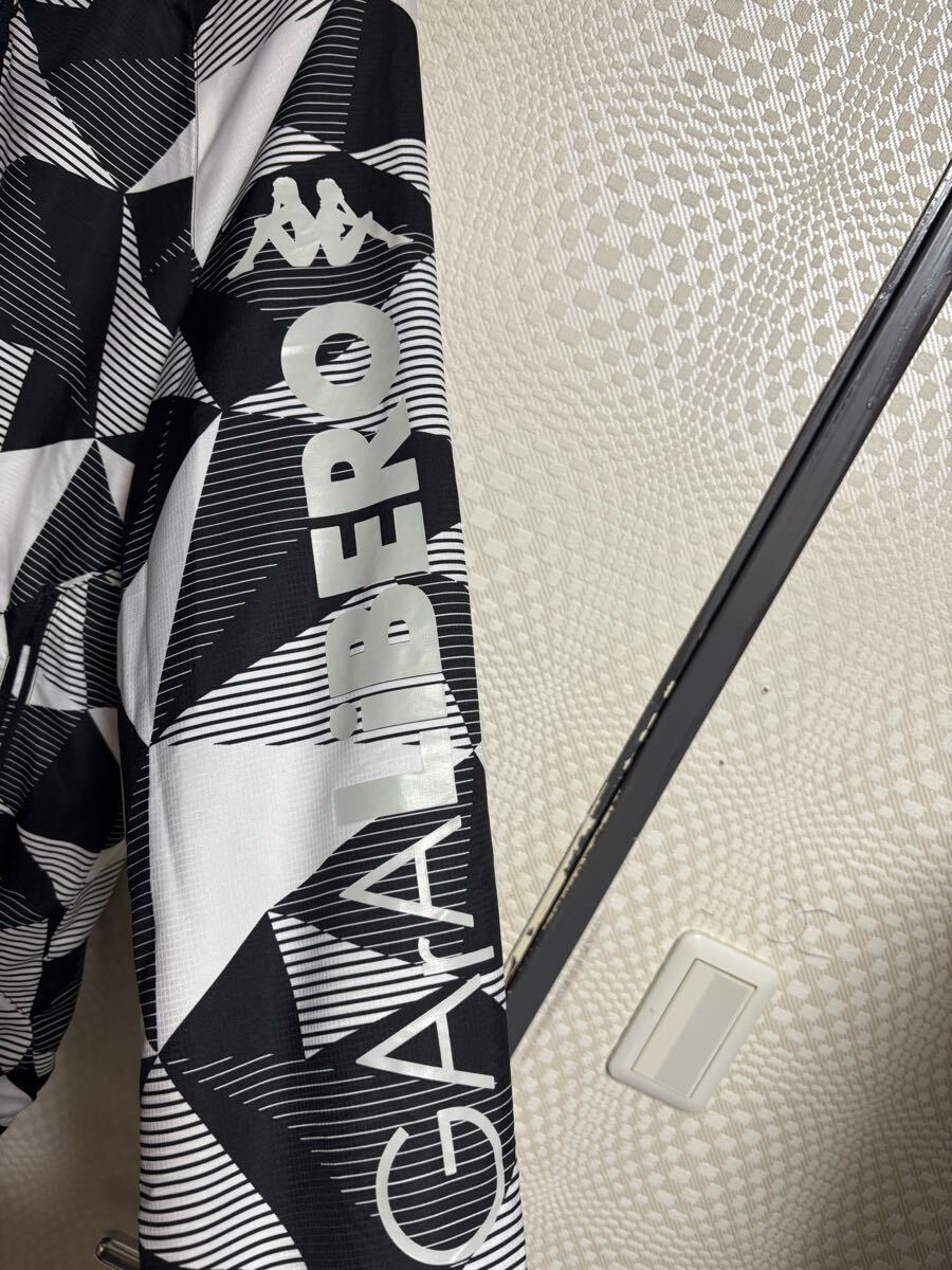Kappa のアウターです。中側はメッシュ生地の二重構造です。サイズ X X L表記で平置き脇下身幅60着丈74センチ位です。袖口にマジックテープ、フードと裾にドローコードが付いています。きれいな状態ですよ。