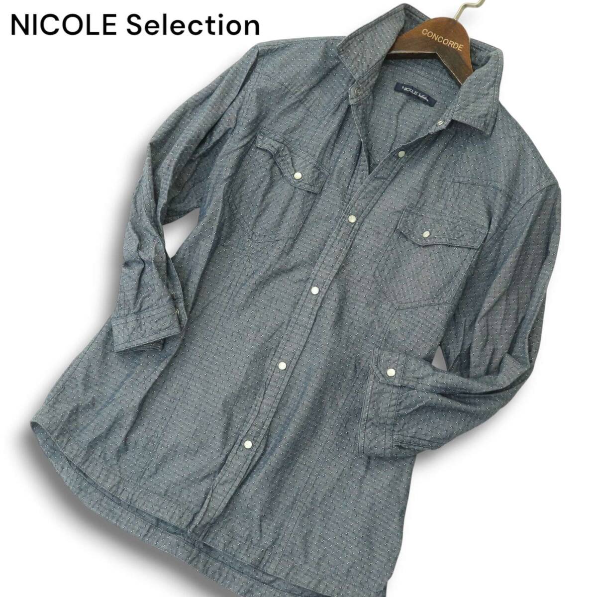NICOLE Selection ニコル セレクション 春夏 襟袖ワイヤー★ デザイン総柄 7分袖 ウエスタン シャツ Sz.46 メンズ