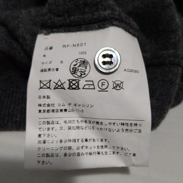 コムデギャルソンコムデギャルソン COMMEdesGARCONS COMMEdesGARCONS カーディガン サイズS RF-N501 - グレー レディース 長袖 AD2020 美品