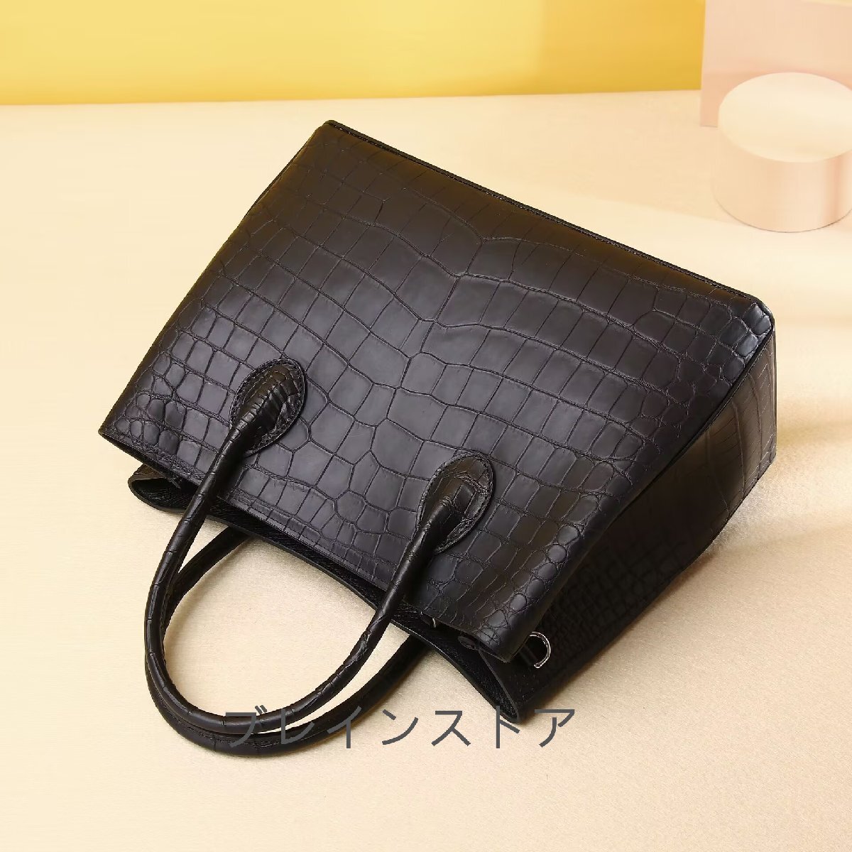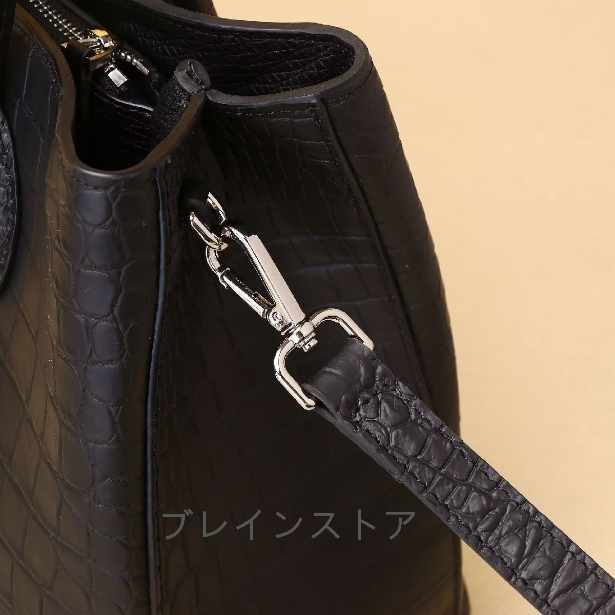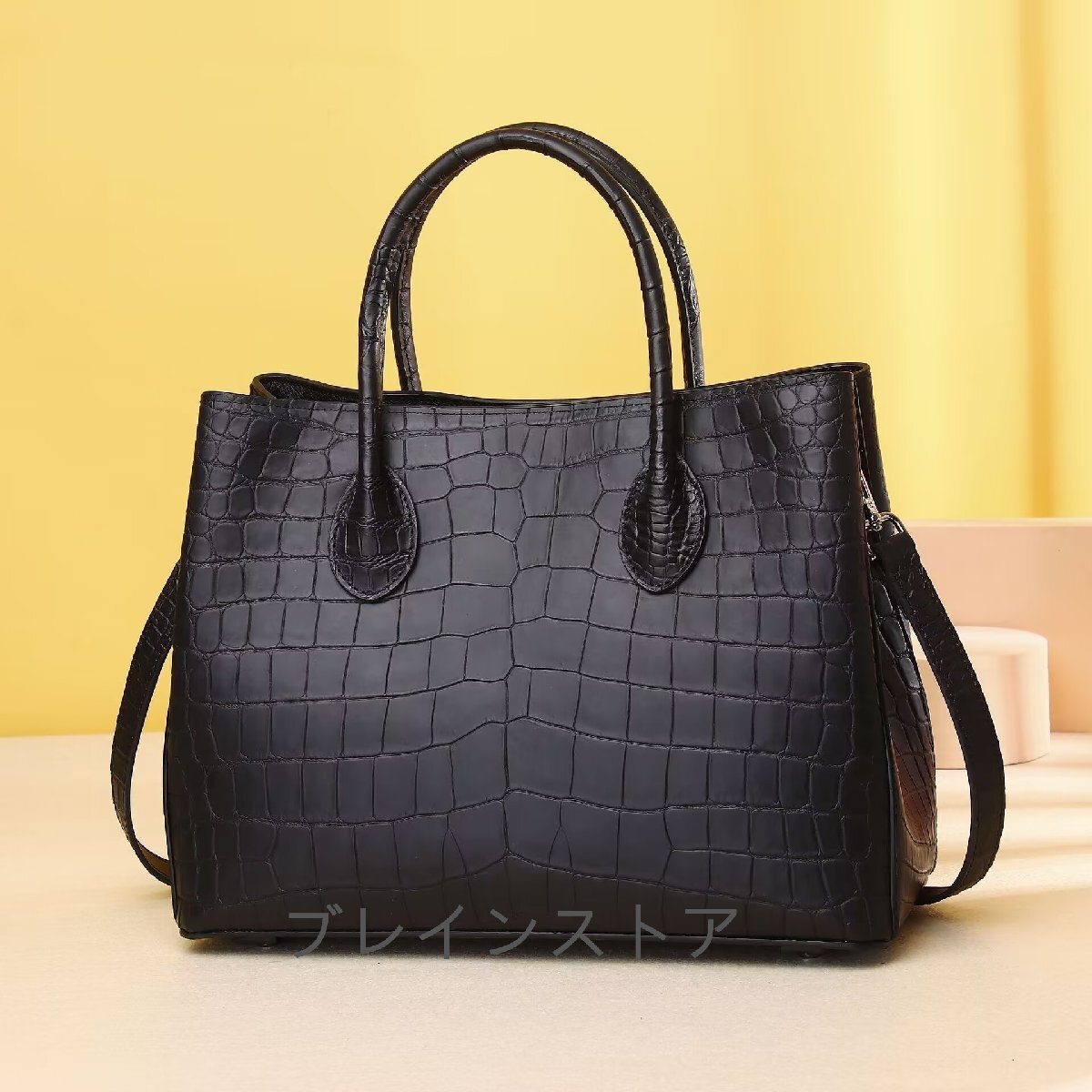 マット仕上げ センター取り ワニ革 レディースバッグ ハンドバッグ クロコダイル 本革 2WAY トートバッグ 手提げ ショルダーバッグ 黒