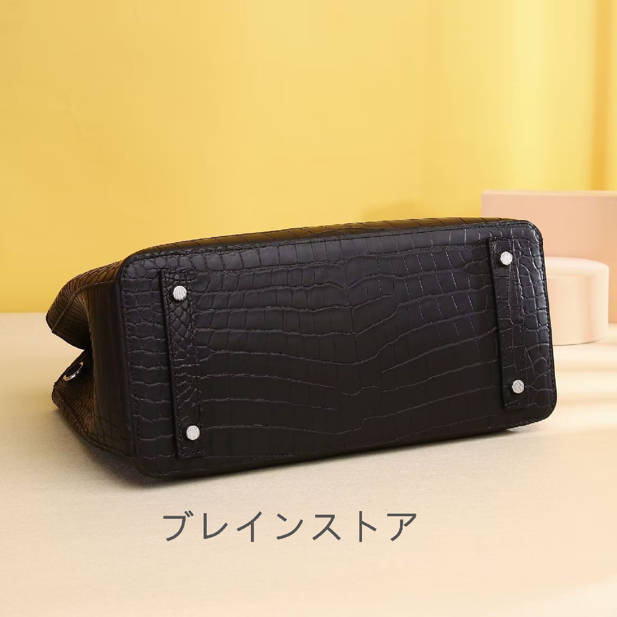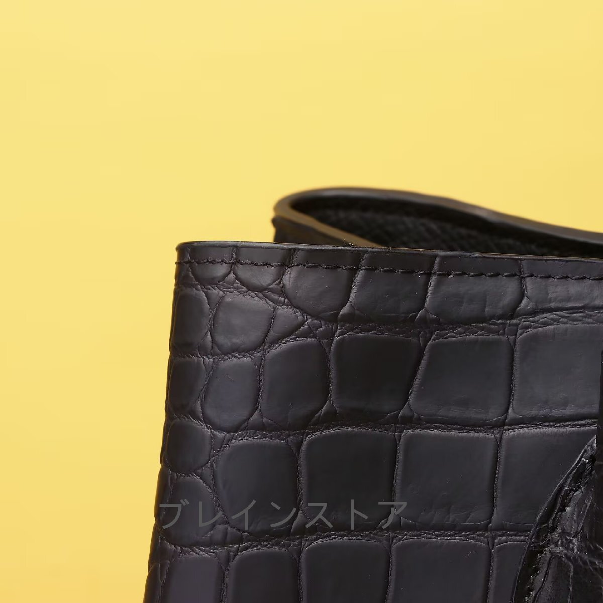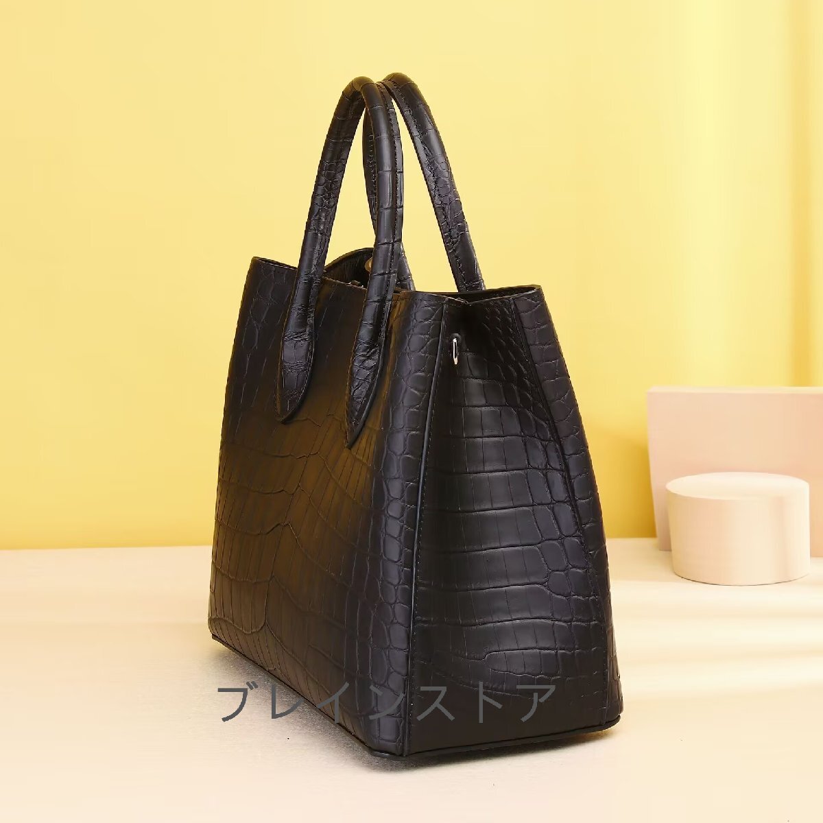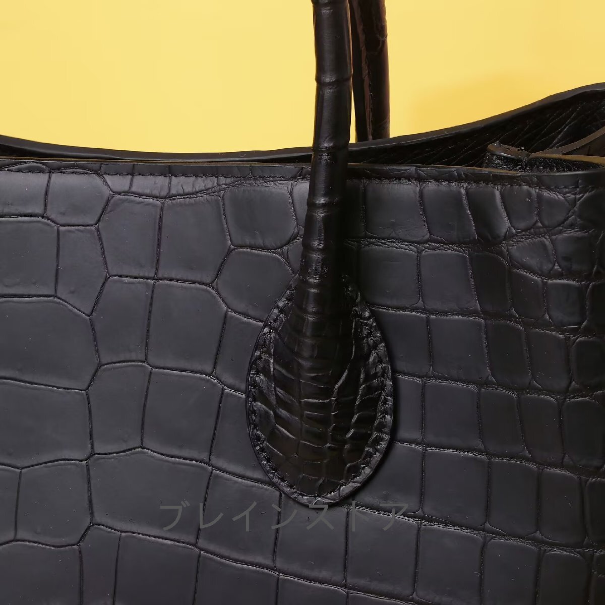 マット仕上げ センター取り ワニ革 レディースバッグ ハンドバッグ クロコダイル 本革 2WAY トートバッグ 手提げ ショルダーバッグ 黒