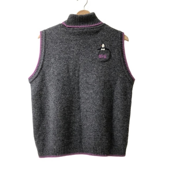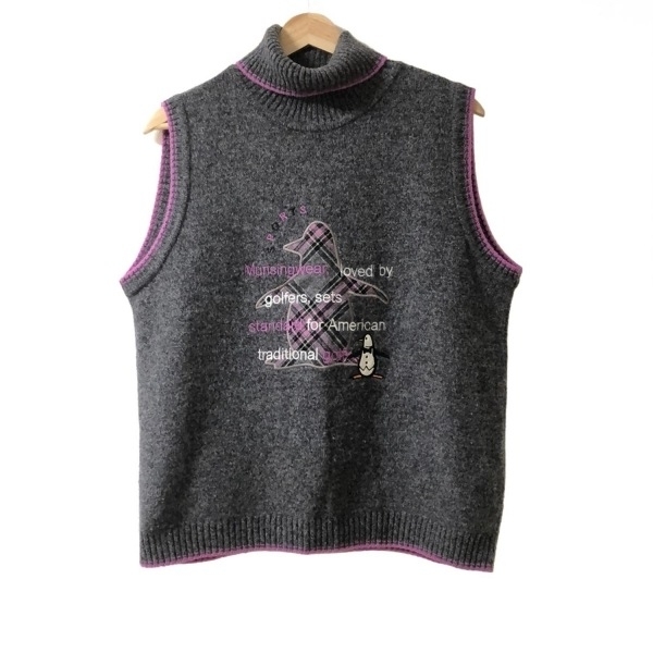 マンシングウェア Munsingwear ノースリーブセーター/ニット サイズL - ダークグレー×ピンク レディース タートルネック 美品 トップス