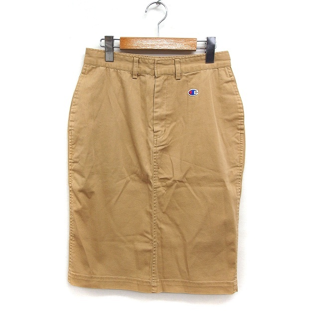 チャンピオン CHAMPION チノ タイトスカート ひざ丈 ロゴマーク コットン 綿 M ベージュ /FT47 レディース