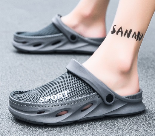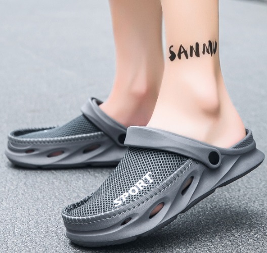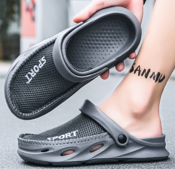 夏新作 オシャレスリッパ メンズ ビーチ スリッポン リゾートサンダル つま先保護 防滑 通気 厚底 グレー/26-26.5cm