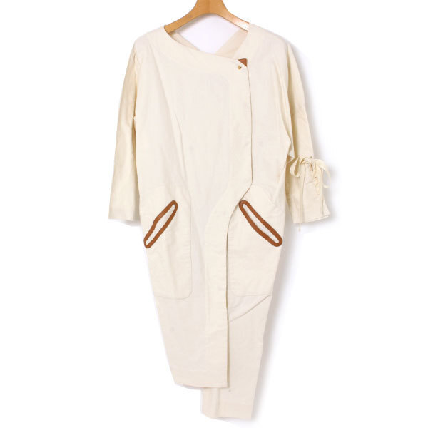 特に目立つ大きなキズはございませんが、 フロント・左袖リボンに汚れ、シワ跡多少ございます。 また、付属のベルトがございません。ご了承の上ご検討下さい。 |
