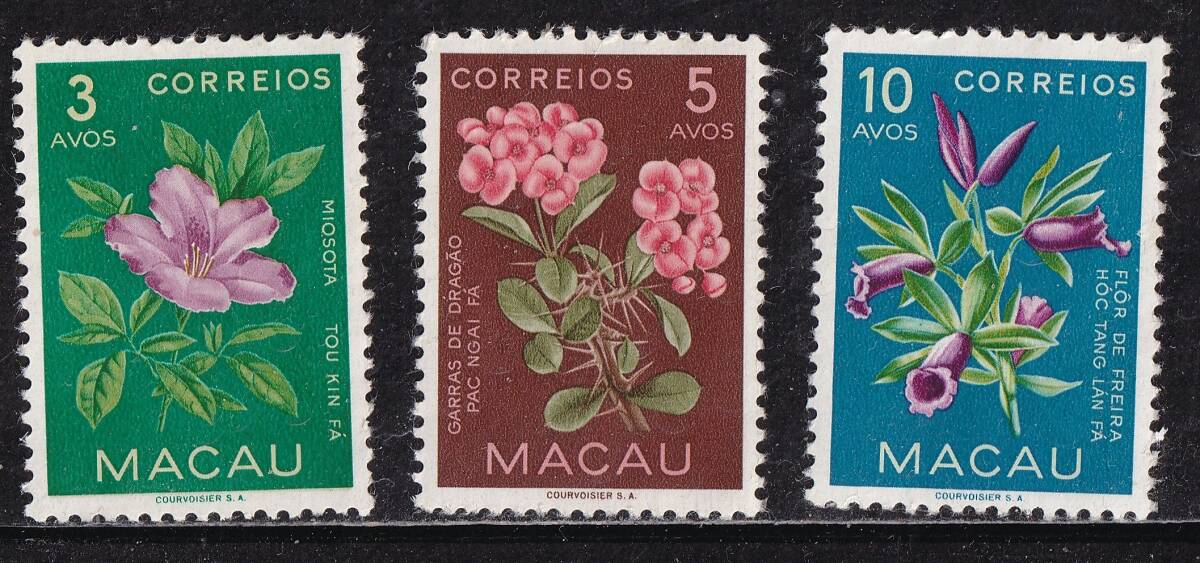 マカオ切手 花3種