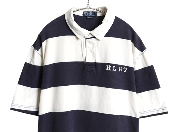 商品名 | 00s ポロ ラルフローレン ボーダー 半袖 ラガーシャツ メンズ XL オールド 半袖シャツ ラグビー シャツ 大きいサイズ ツートン ポロシャツ |