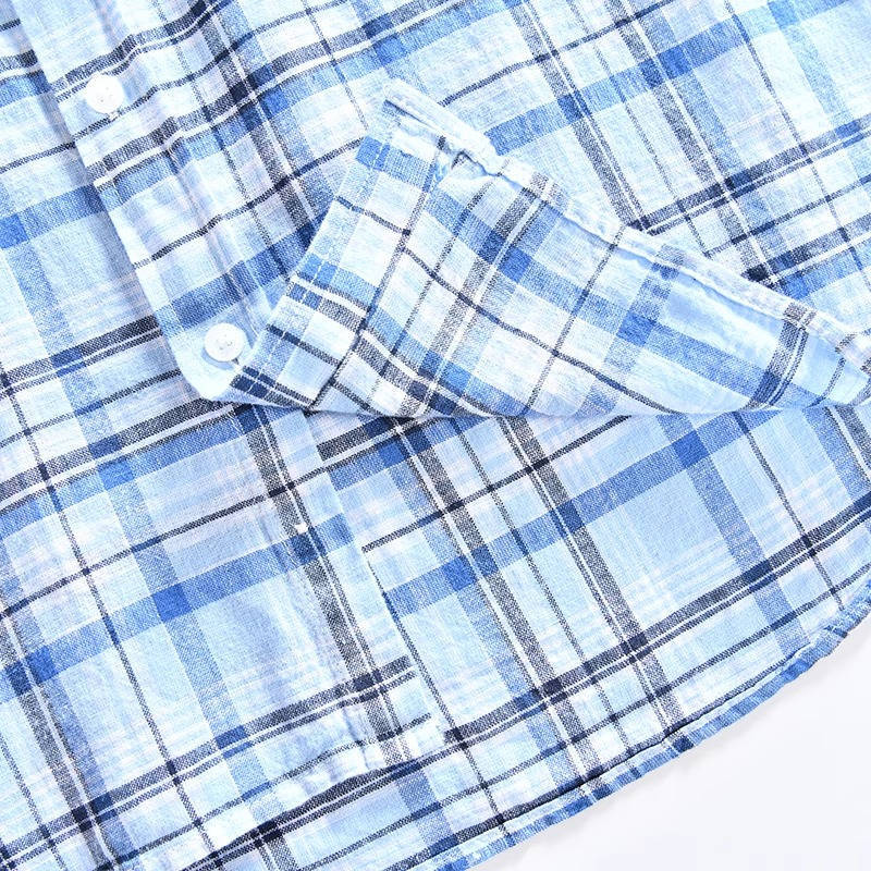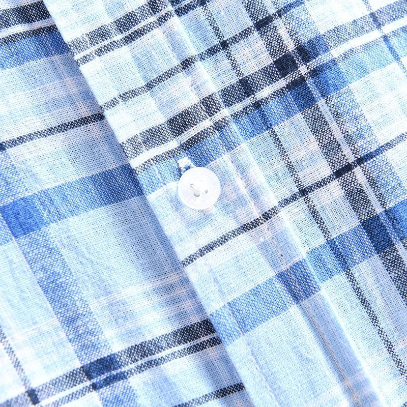 綿麻素材・夏にぴったりの涼感チェック柄メンズシャツ(吸湿速乾)