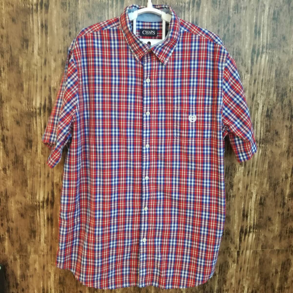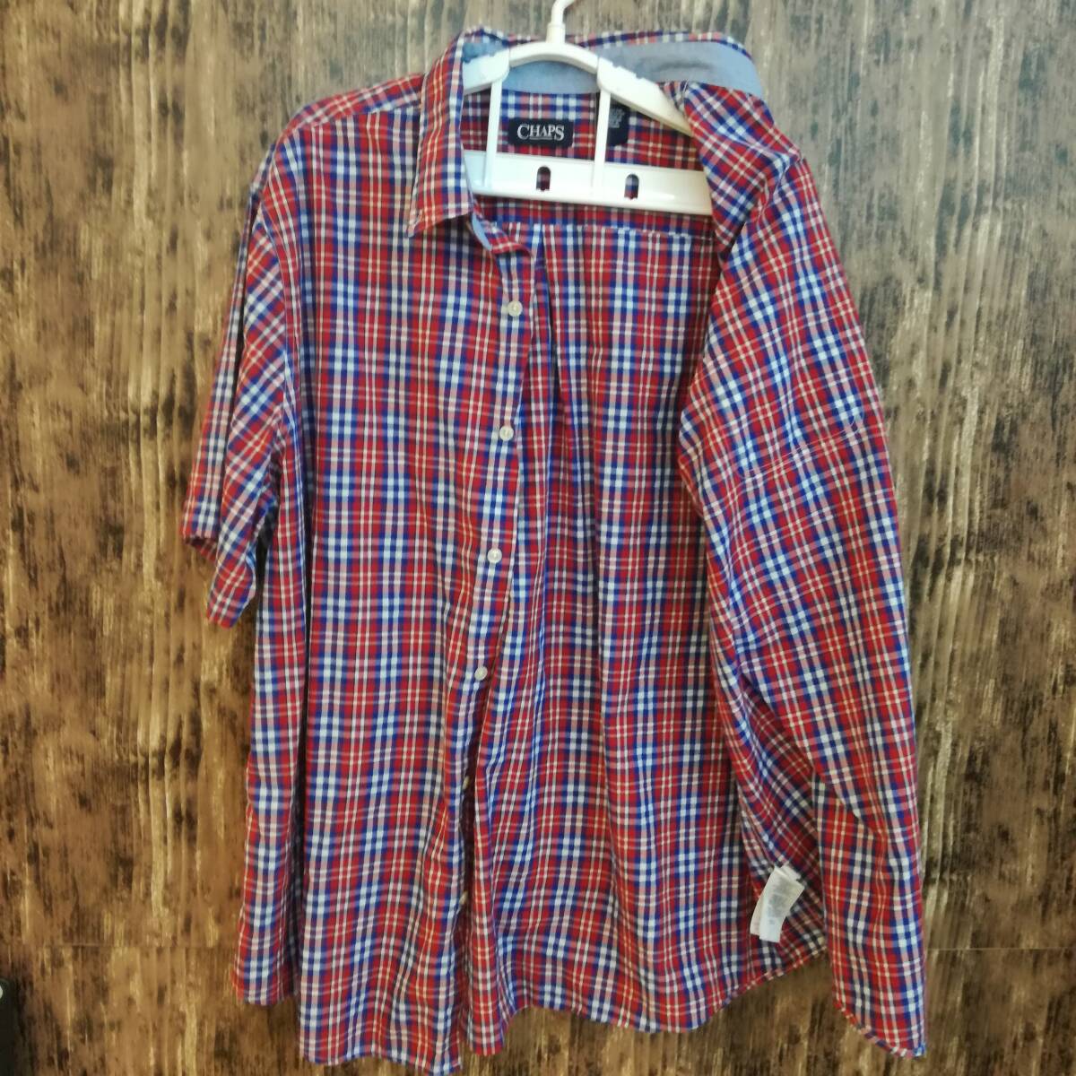 中古 アメリカ古着 CHAPS チャップス 半袖シャツ メンズ XXLサイズ 2XL 3L 赤色 レッド チェック柄 ビンテージ カジュアル 送料無料