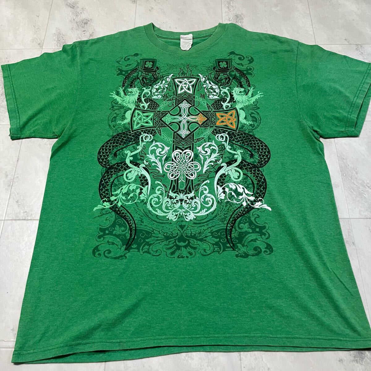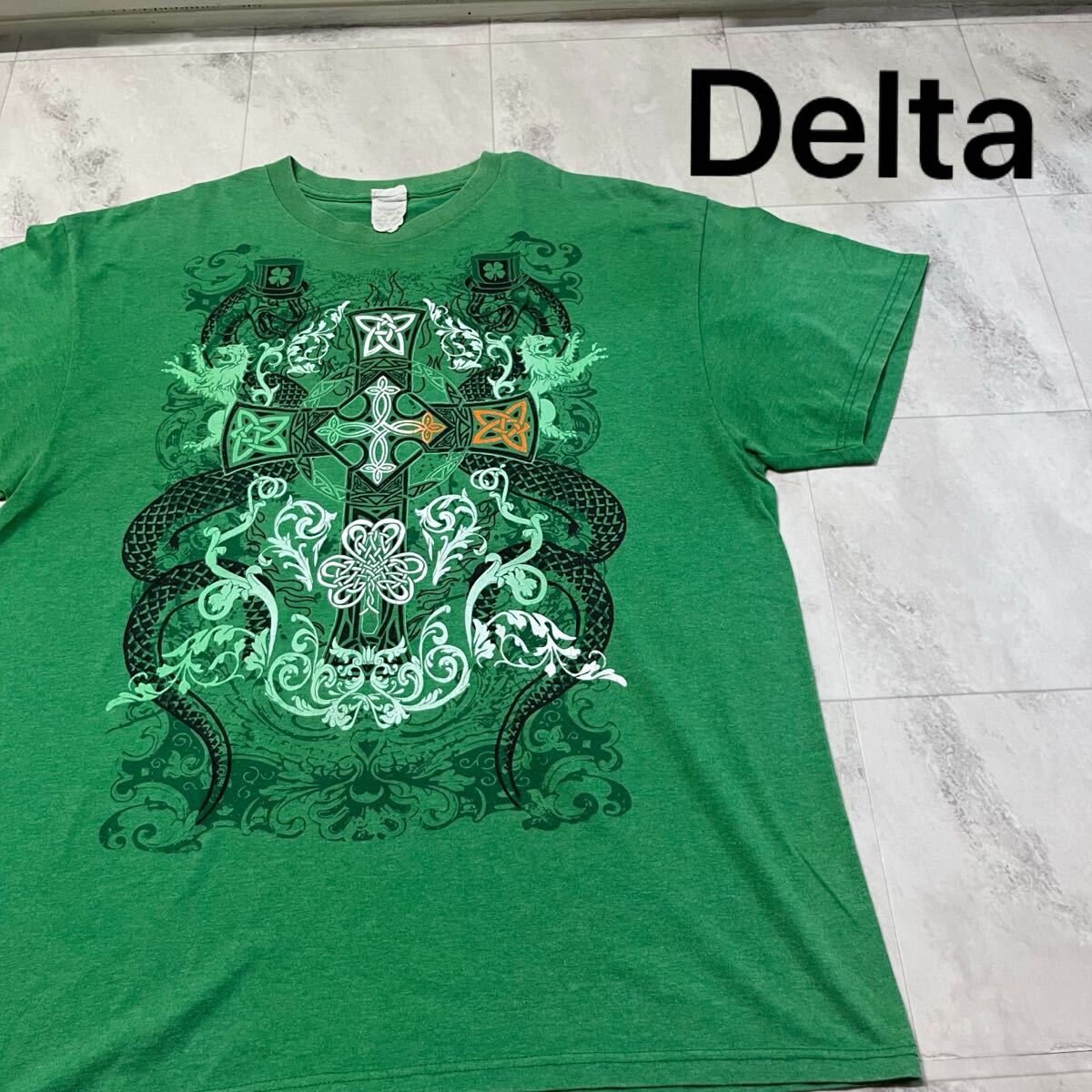 Delta デルタ lrish Motif Tシャツ 半袖 グラフィック ビッグプリント ストリート USA企画 アメカジ グリーン サイズXL相当 玉mc3910