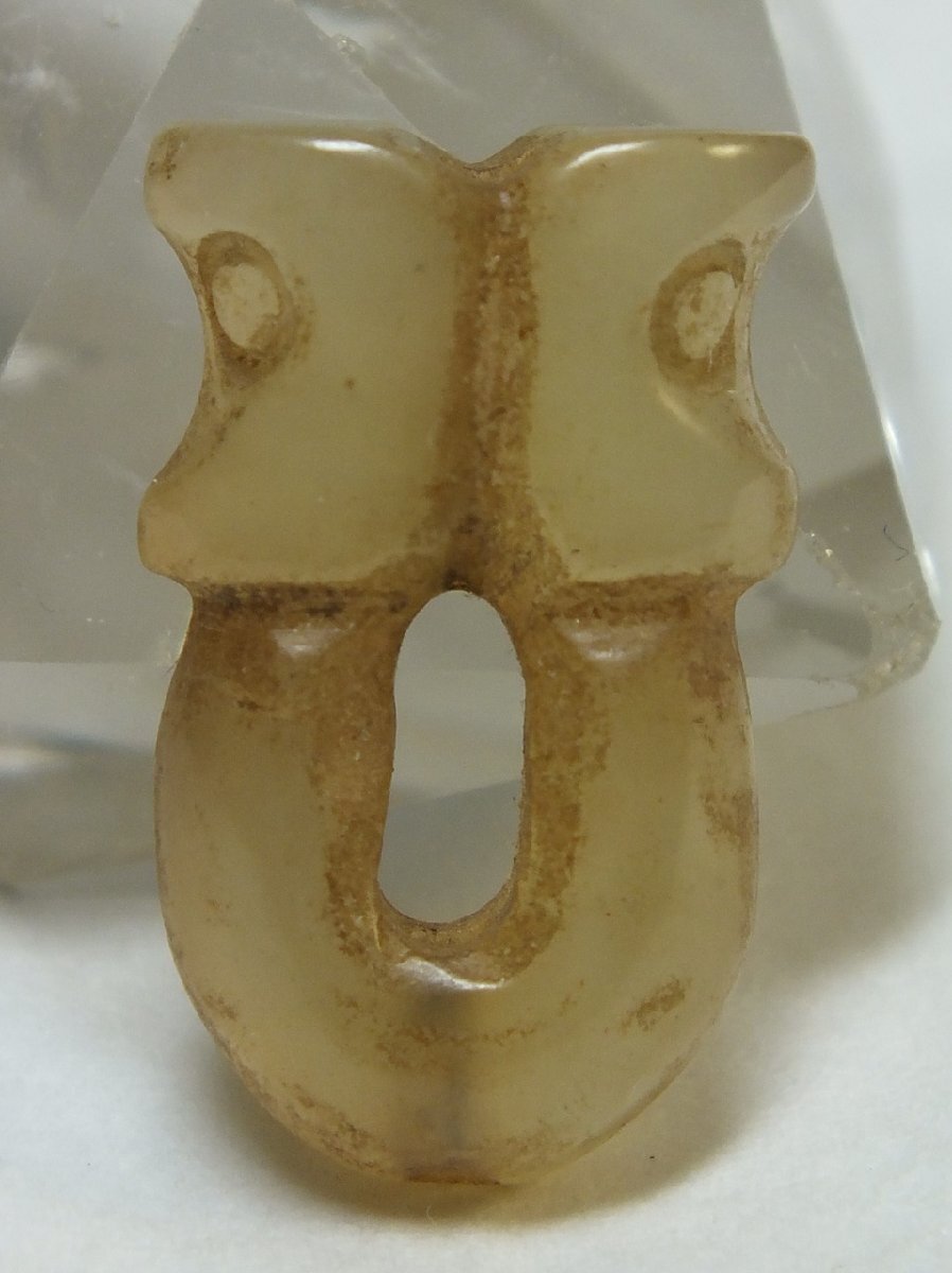 | ▲商品説明▲ | サイズ:23×14×7mm 重さ:3.7g 今は中国でも貴重な石、和田白玉(ホータンはくぎょく)。石コレクションやお守りに。貫通穴が有るので下げ飾りにもなります。 yo.r.a ★製造場所・年代など詳細は判りません。 ●中国の西部砂漠地域(新彊、甘粛)の河床(今は水が無い所)から出る玉(ぎょく)は、中国では和田(ホータン)白玉と呼ばれ、何千年も前から珍重されています。翡翠の照りとは違い、ねっとりとした潤いがあります。中国の玉(ぎょく)コレクター垂涎の石です。 |