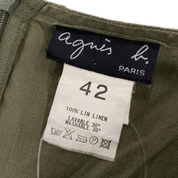 アニエスベー agnes b サイズ42 L - カーキ レディース ノースリーブ/リネン ワンピース