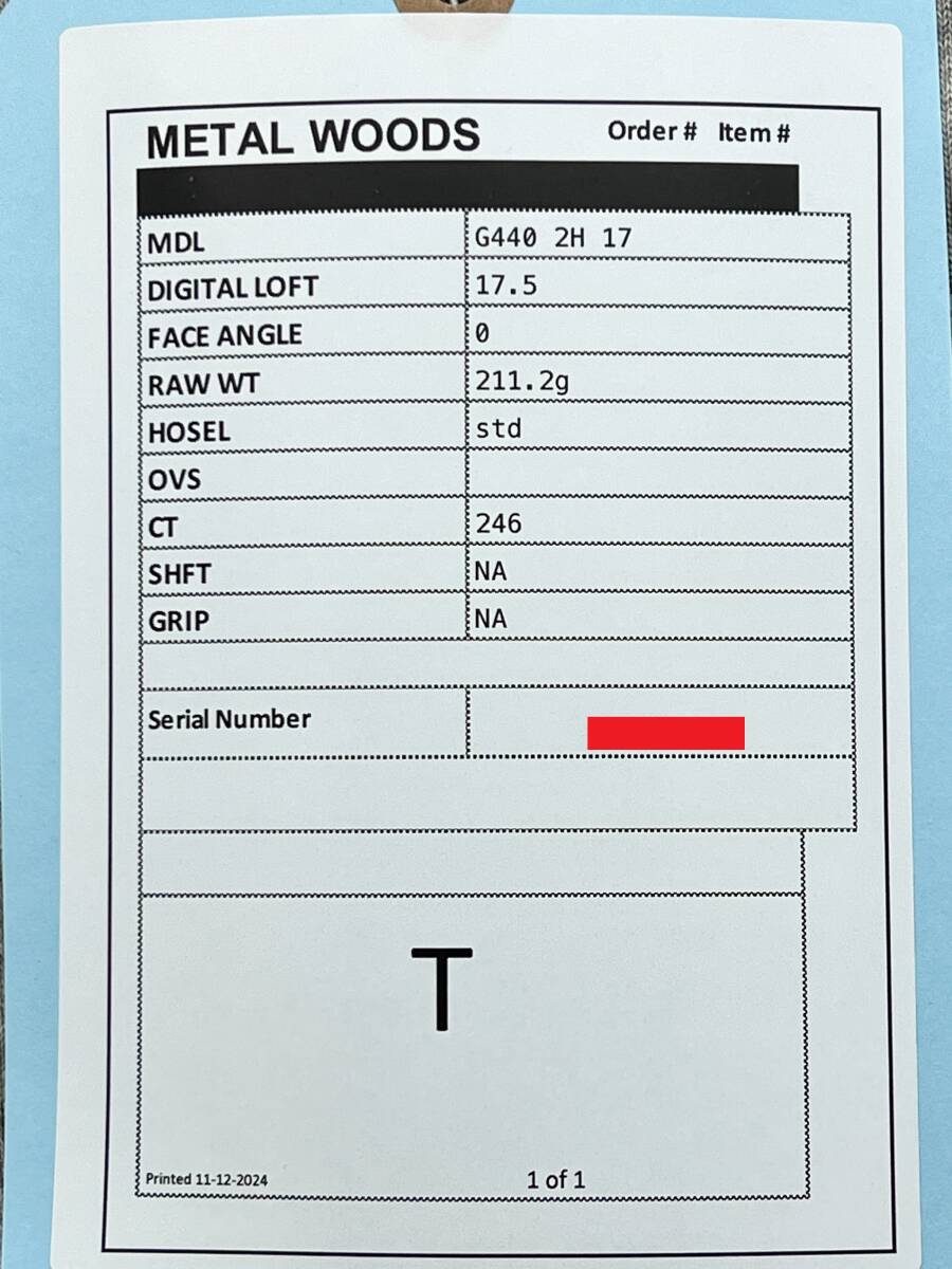 ☆CT246☆ ツアー支給品 WRX PROTO PING G440 HYBRID #2 17°(リアル 17.5°) スペックシート付き TOUR ISSUE