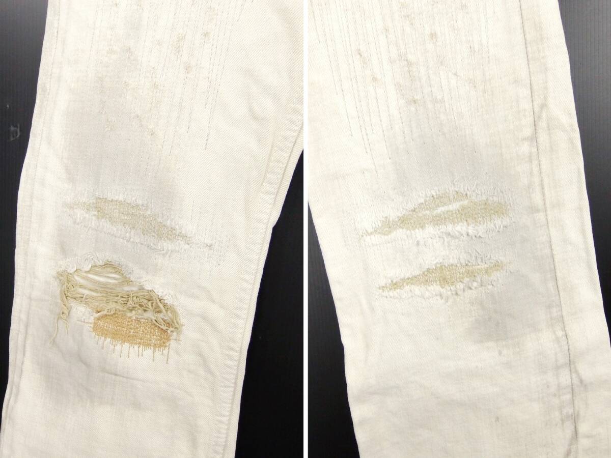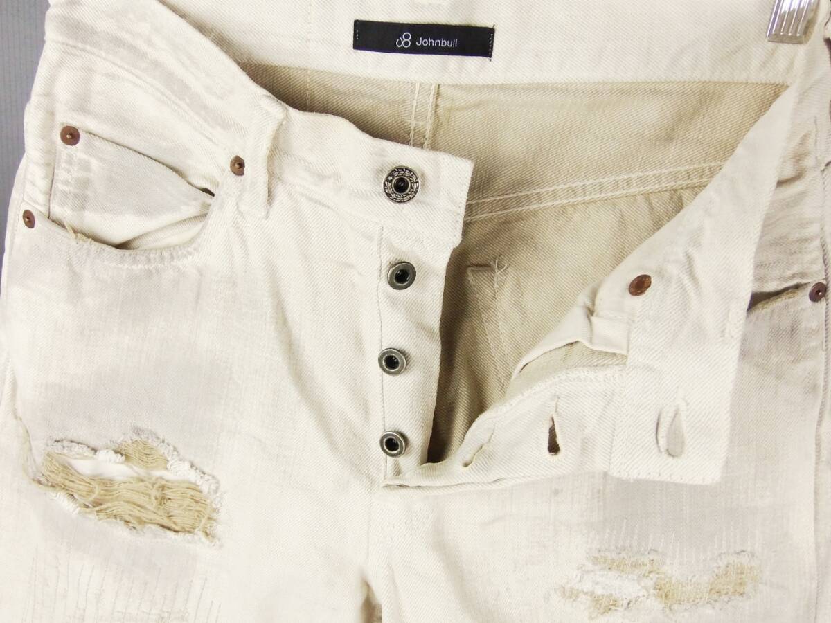 商品説明 | ■商品について ブランド名:Johnbull 生産国:MADE IN JAPAN 日本製 サイズ:28 カラー:オフホワイト系 素材:コットン 100% 品番:11313 参考定価:約 31,900円 ・セルビッチデニム ・ダメージリペア加工 ・汚し加工 ・フロント ボタンフライ ・裾上げ なし Johnbull のプレミアムシリーズ、ハードワーカージーンズ、 ハードなダメージ&リペア加工、リアルなUSED感を再現した1本、 当て布を用いたリペア加工が施されているため、肌の露出はありません。 着こなしの幅が広いアイテムなのでお勧めですよ。 是非この機会にご購入を検討頂けますと幸いです。 表記サイズ:28 ウエスト幅:約36cm 股上:約26.5cm 股下:約73.5cm 裾幅:約20.5cm 腿幅:約30cm (股下付根部分) ※平置にて計測 ※素人採寸のため多少の誤差はお許し下さい 全体的に着用に伴う使用感はありますが、 まだまだ問題なく着用頂ける状態です。 中古品のため少しでも状態を気にされる方、 完璧な商品をお求めの方は入札をお控え下さい。 -------------------------------------------------------------------- 他にも衣料品を中心に出品させて頂いております。 複数落札して下さった場合には、まとめて発送させて頂きますので、 送料がお得になります。⇒【出品リスト】 |