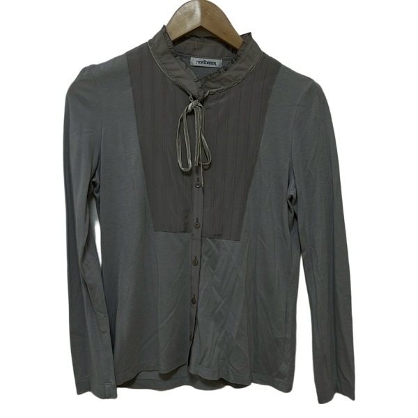 ニューヨーカー NEW YORKER 長袖シャツブラウス サイズM - ライトグレー×グレーベージュ レディース スタンドカラー/リボン トップス