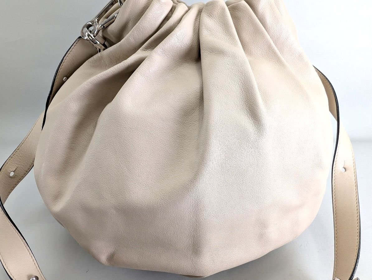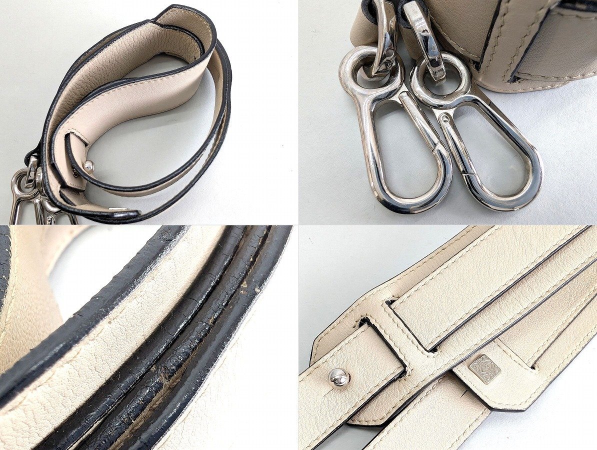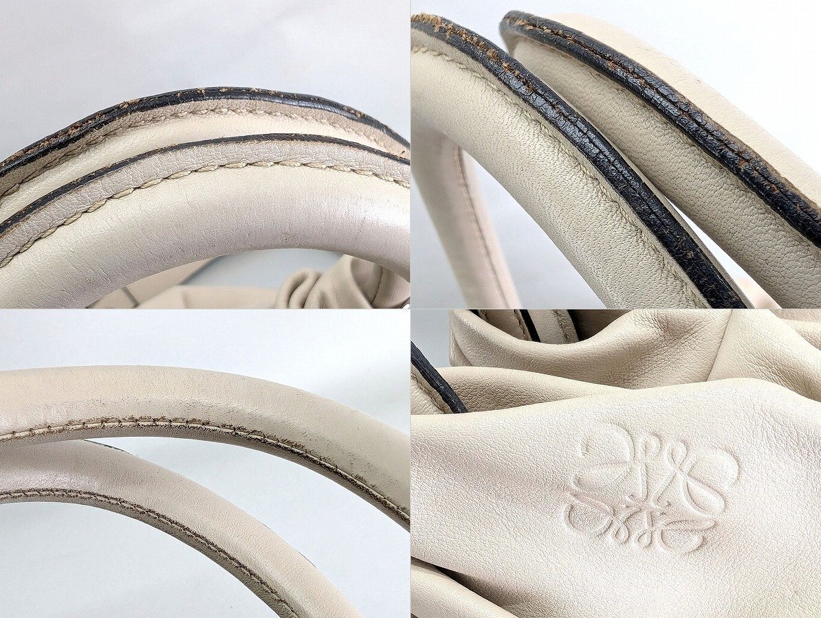 中古品です。 外観にやや使用感があり、表面各所に小さなスレ、汚れがあります。 皮革のシワ、ヒビ割れ、変色がみられます。 ハンドルやストラップの側面コバ塗装にヒビ割れ、剥がれがあります。 バッグの側面や底面、ハンドルに黒ずみが目立ちます。 バッグ内装の布地は全体に黄ばみがあり、一部に黒いシミ汚れがあります。 写真や記載にない不具合があるかもしれませんが、現状渡しにてご容赦ください。 完全な状態をお求めの方、細かい点が気になる方はご入札をお控えください。 ノークレーム・ノーリターンでお願いいたします。 |