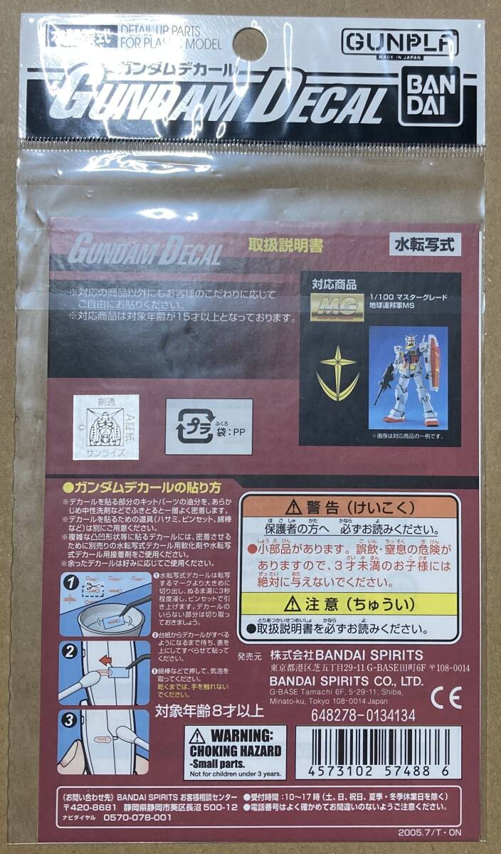 ガンダムデカール No.16 1/100 MG 地球連邦軍MS用 ① 「機動戦士ガンダム」★送料込