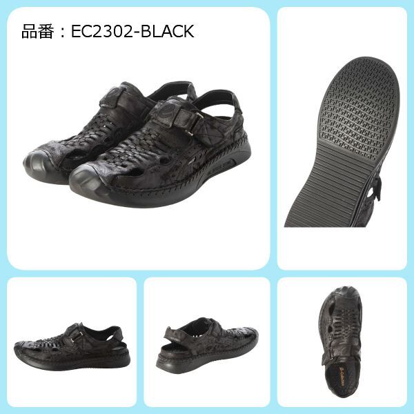 B品 ec2302 カジュアルシューズ ブラック 24.5cm マイクロファイバーレザー スポーツサンダル カメサンダル グルカサンダル メンズ ①