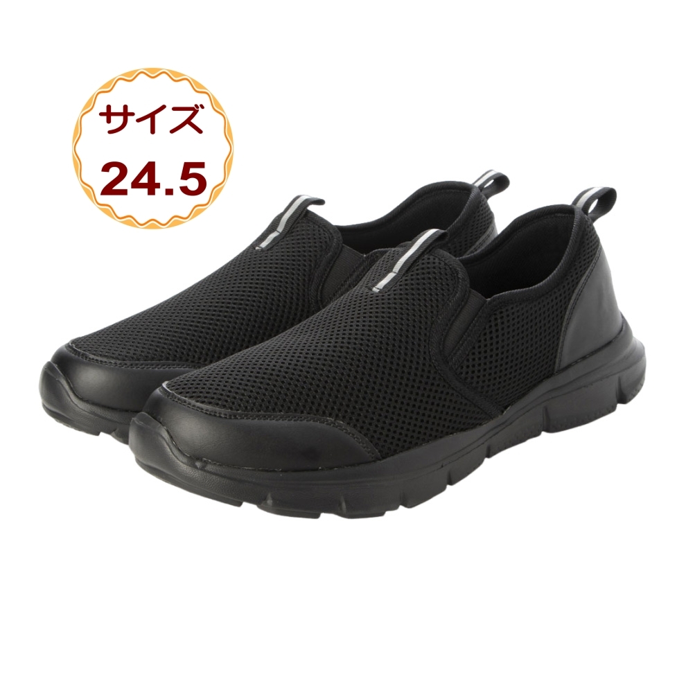 メンズ スリッポン スニーカー 運動靴 スクール ウォーキング シューズ 作業靴 普段履き 軽量 3E 幅広 メッシュブラック 黒 24250-blk-245