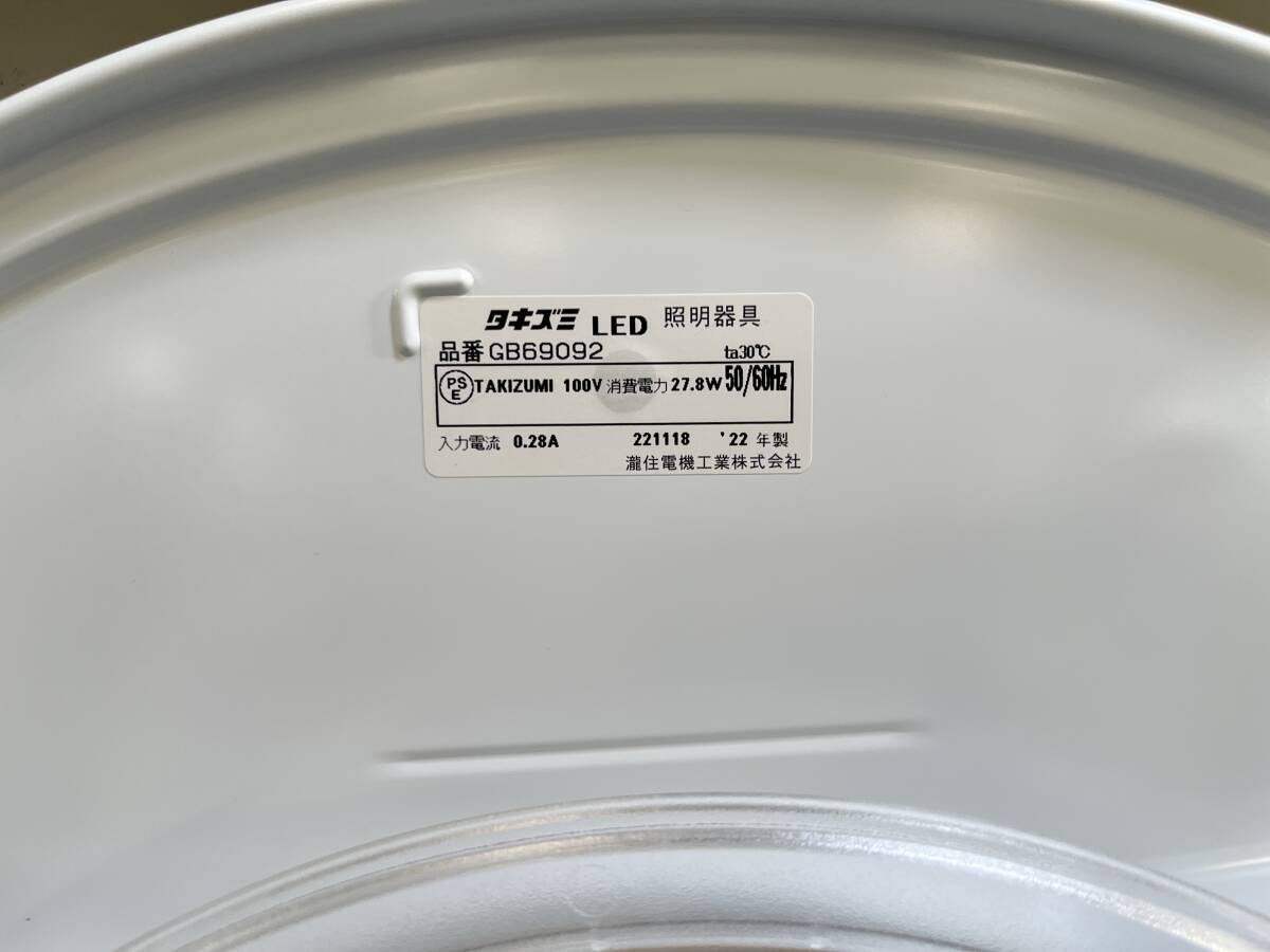K-834★TAKIZUMI★瀧住 LED照明器具 GB69092 シーリングライト 22年製 中古品