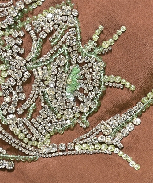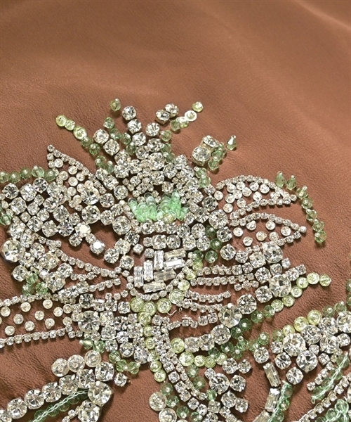 アセテート69%、絹31%、(刺繍)ガラス70%、金属繊維25%、ポリエステル5% |