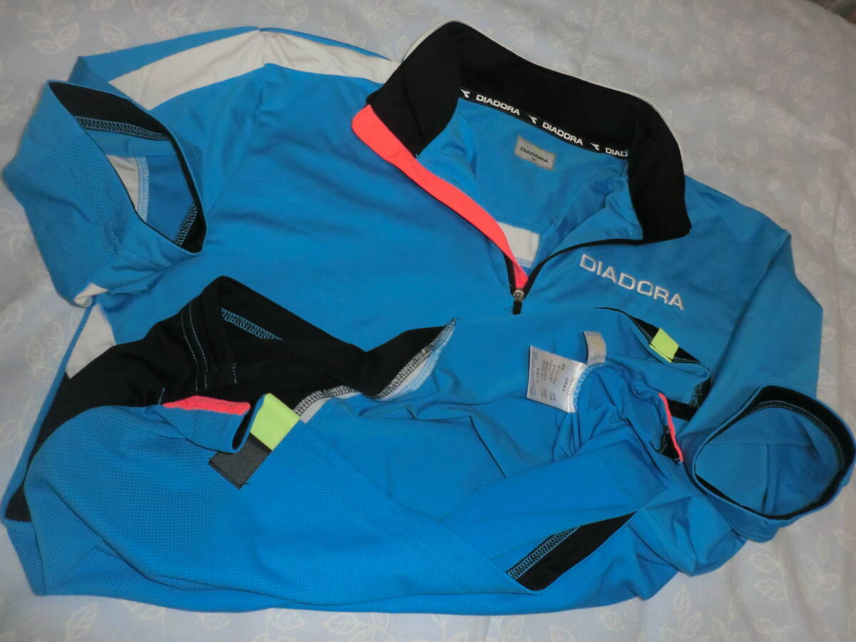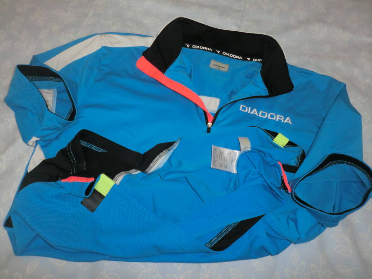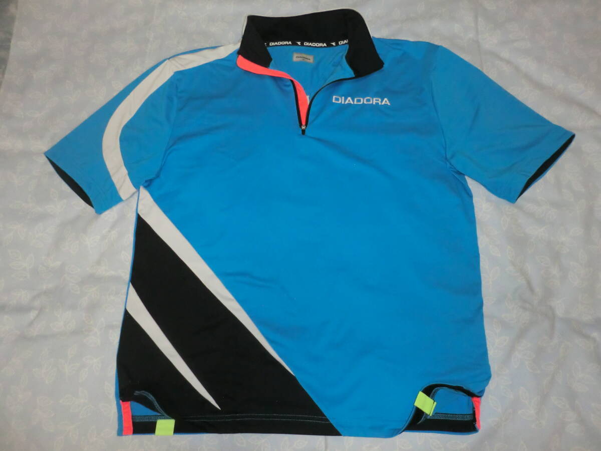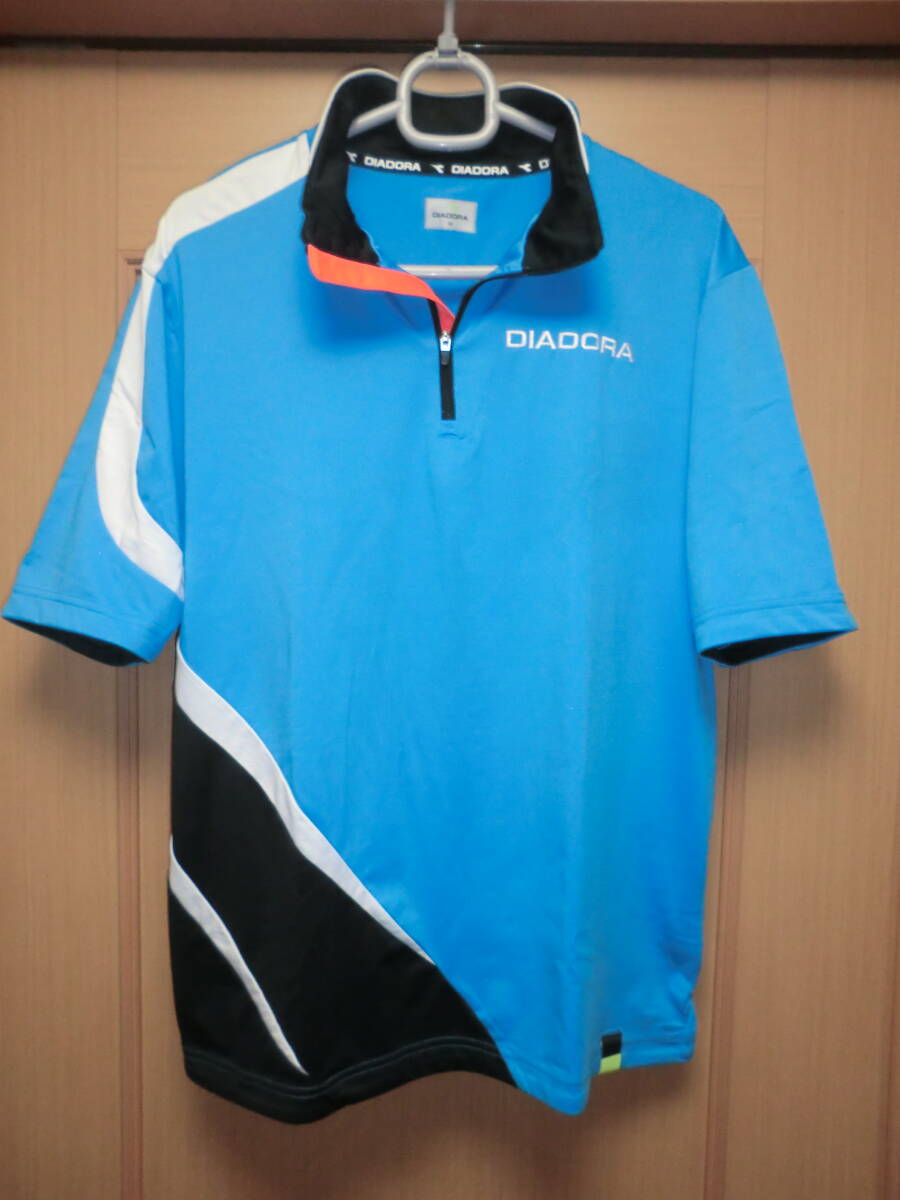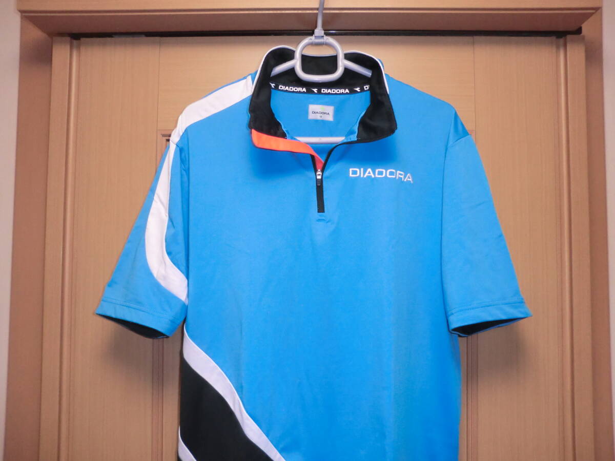 ◆爽やかブルー◎ハーフジップシャツ【DIADORA】ディアドラ★左胸に DIADORA ロゴ刺繍◎オシャレなデザイン★カラー/ブルー他◎サイズ/M◆