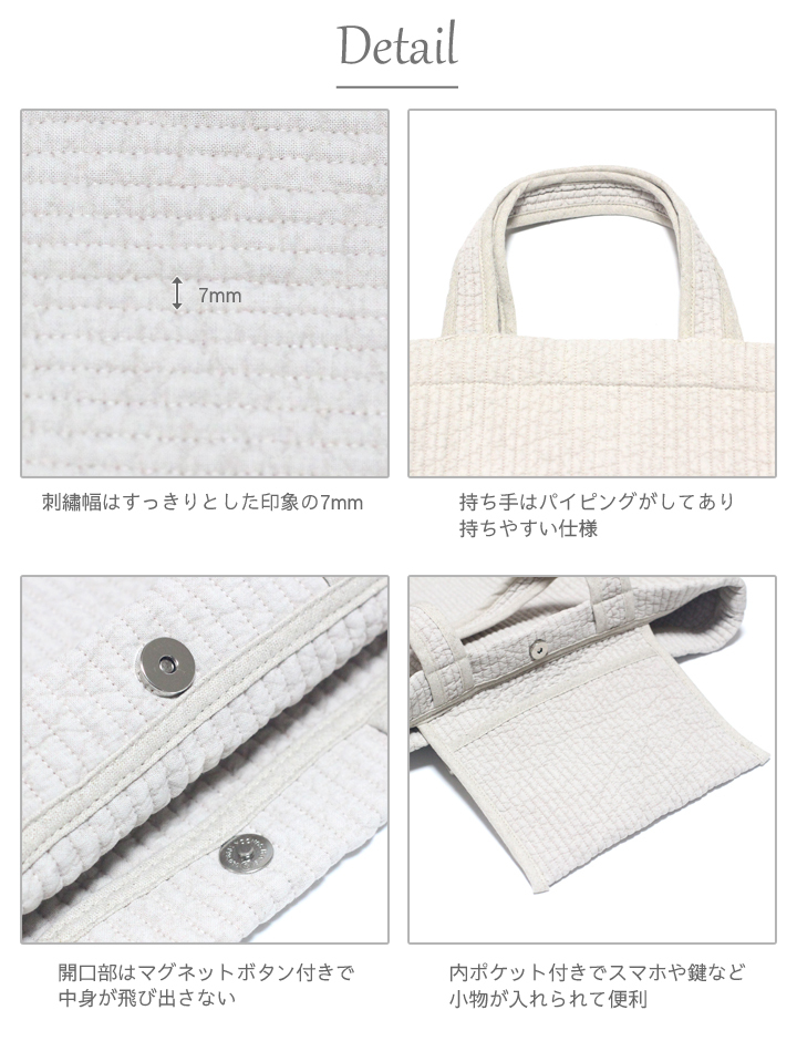| 商品説明 | 『ヌビバッグ』とは?! ヌビとは韓国語でキルティングしたものを意味します。 そのキルティングの生地で韓国の布団であるイブルを作ることからイブルバッグとも言います。 ◆特徴◆ やわらかく肌触りが抜群! 軽くて肩コリ知らず! 洗える生地なので清潔! イブルのナチュラルの風合いがシンプルなので、 カジュアルファッションからキレイめファッションまでマッチします!! サテンリボン付きエレガントトートバッグです。 セレモニーシーンにも使っていただけます! Sサイズは、500mlペットボトルは寝かせてすっぽり入りますし、立ててもちょっと顔が出る程度です。 マチ広めの舟形なので驚きの収納力です!! *リボンは片面のみございます、予めご承知おきくださいませ。 手持ちのバイピングの濃さは入荷時期によって掲載画像と若干相違がございます。 |