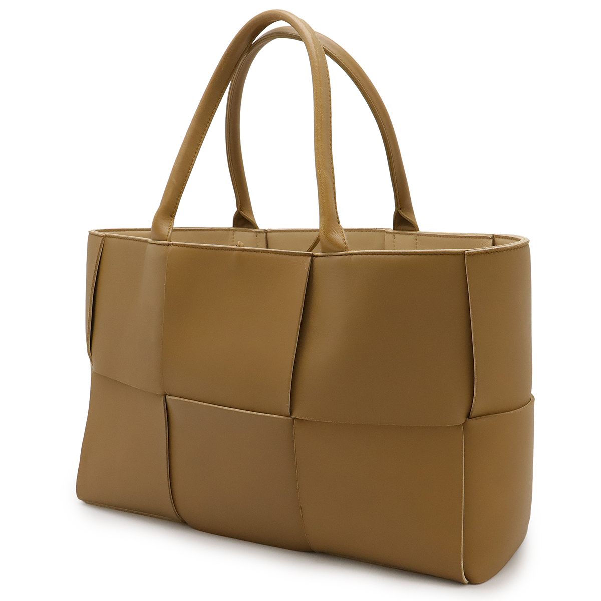 定番のイントレチャートを現代的に解釈したマキシイントレチャートのトートバッグ。