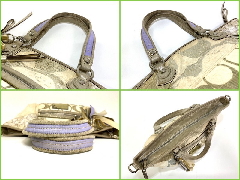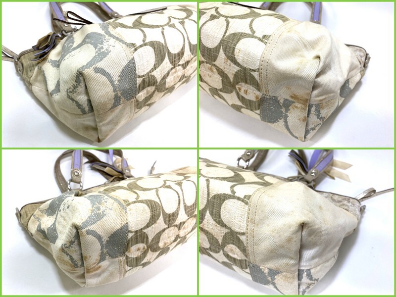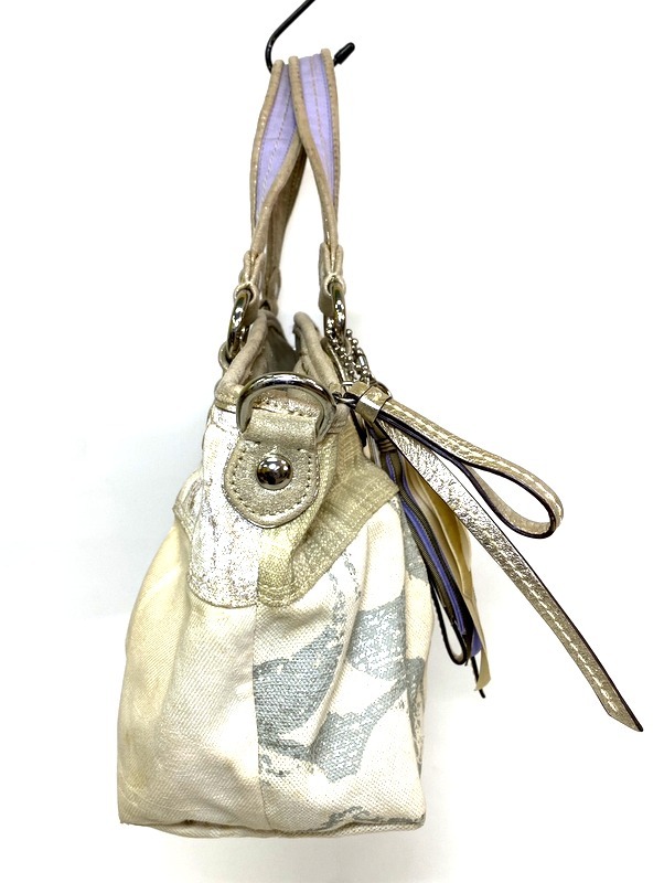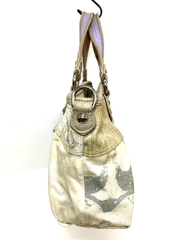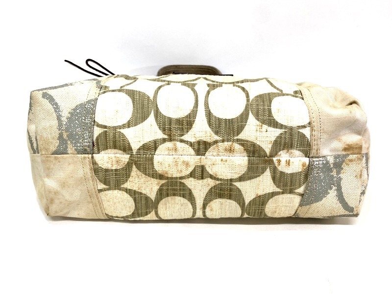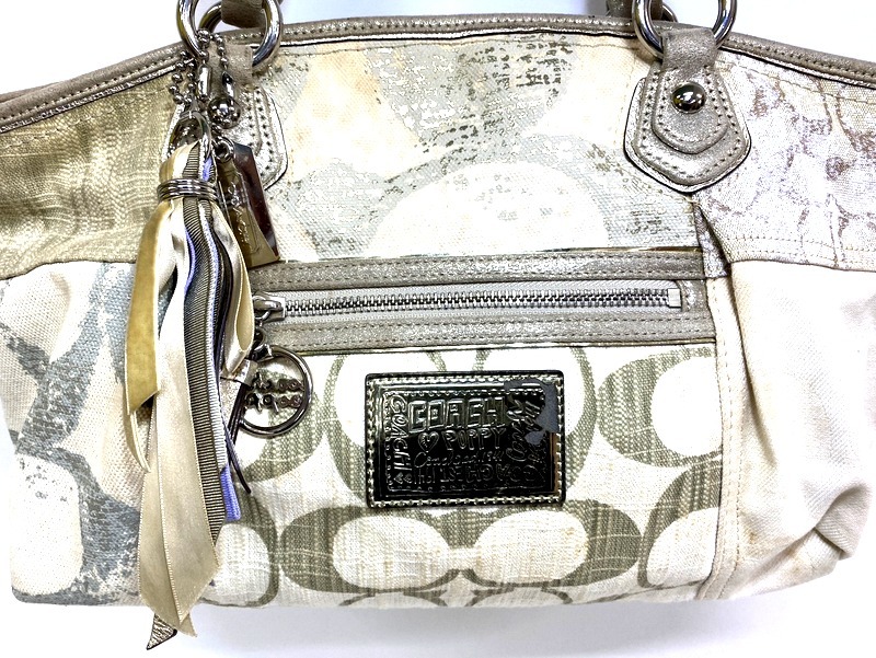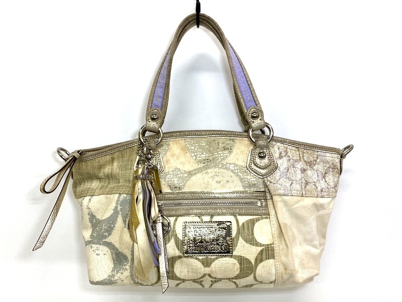【即決】COACH コーチ シグネチャー ポピー ハンドバッグ パッチワーク キャンバス ベージュ ゴールド 16732 ≪難あり≫