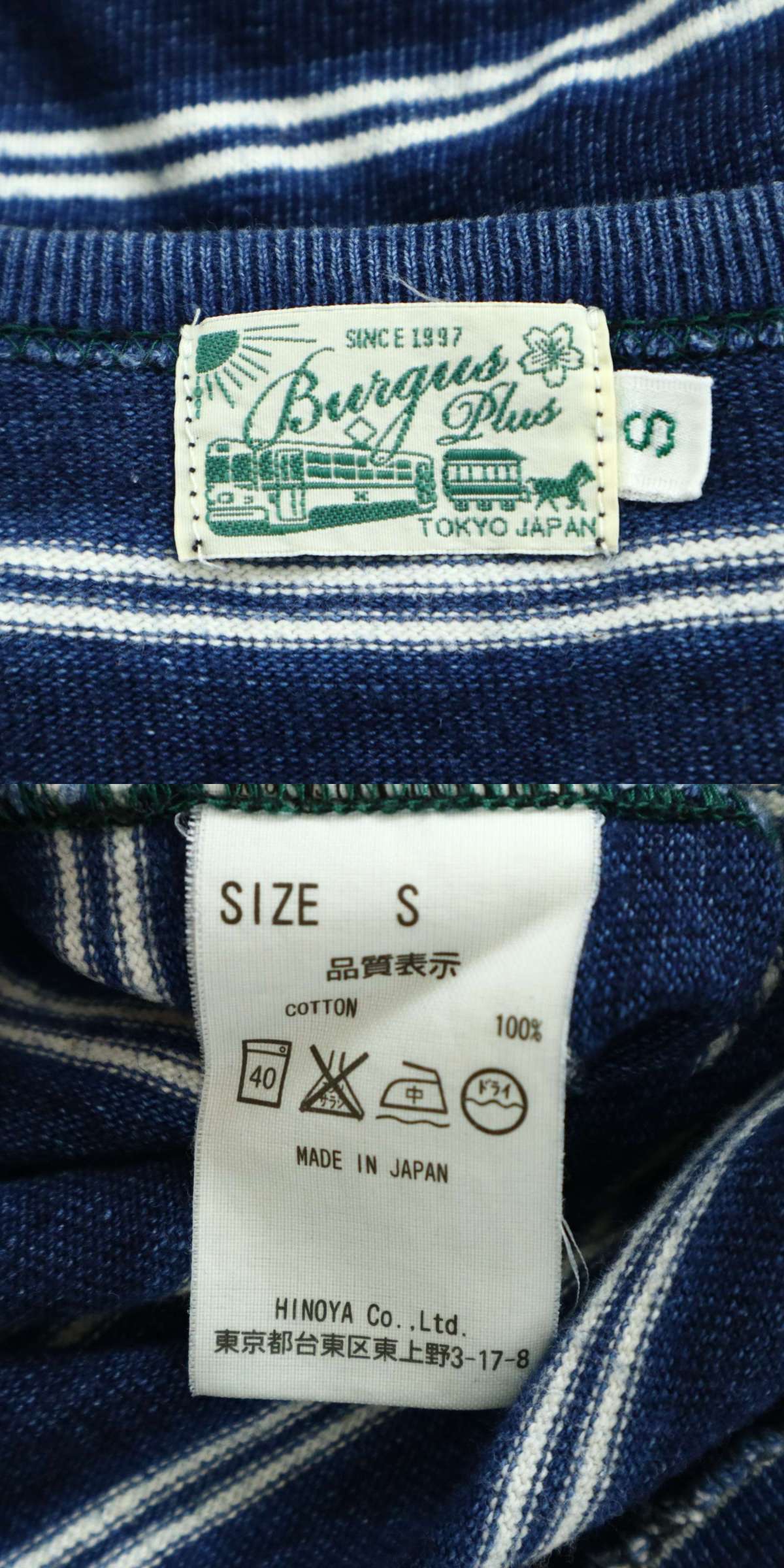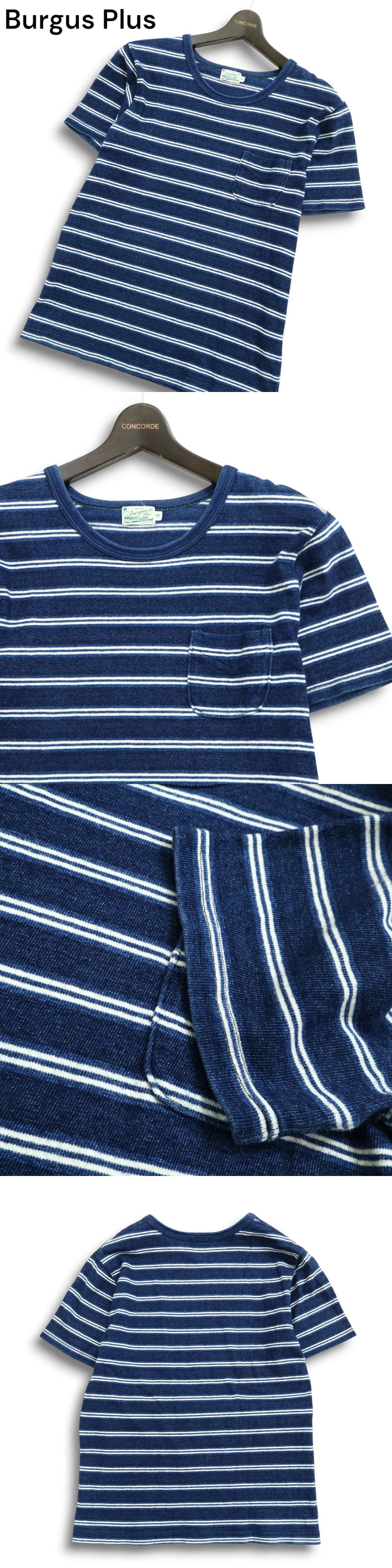 Burgus Plus バーガスプラス 春夏 インディゴ★ 半袖 ボーダー Tシャツ カットソー Sz.S メンズ 紺 ネイビー 日本製