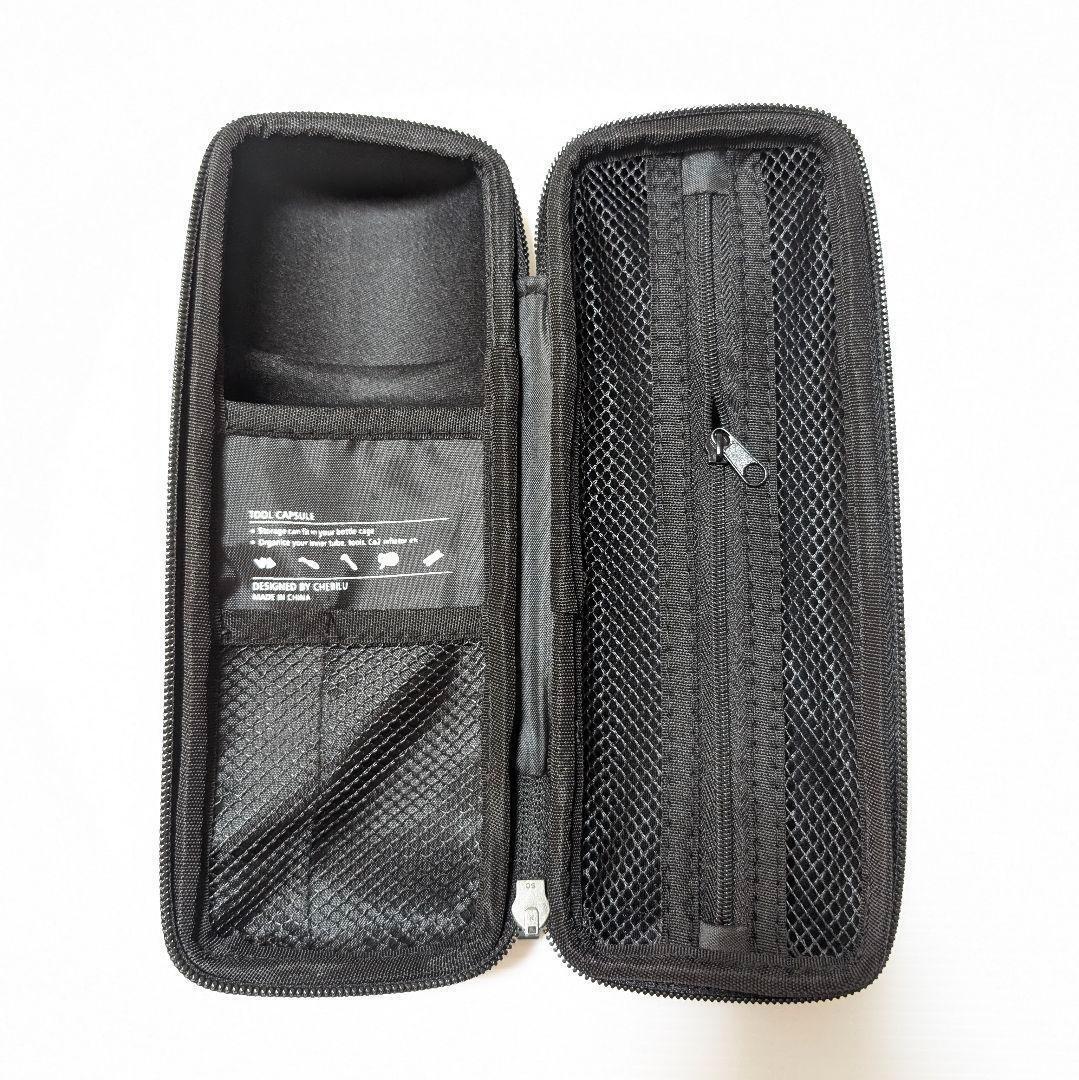 ■修理キット、小型エアポンプ、スパナ、交換パーツなど自転車用ツールの収納に最適なコンパクトサイズ