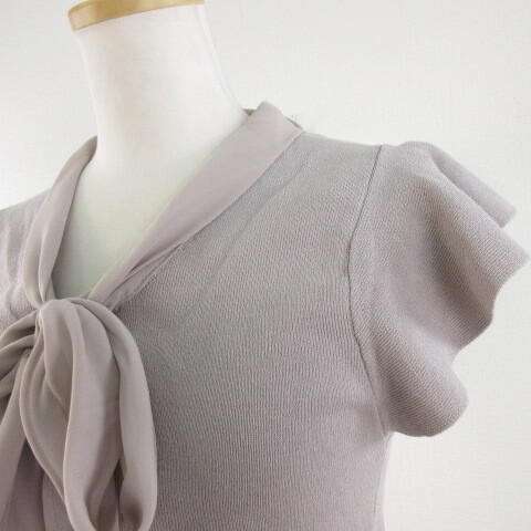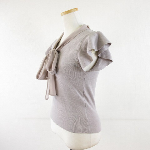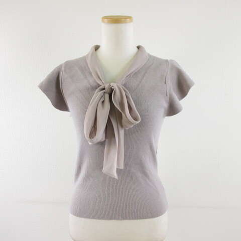 イング INGNI ボウタイ付フリル袖ニット キャップスリーブ グレージュ M *A318 レディース