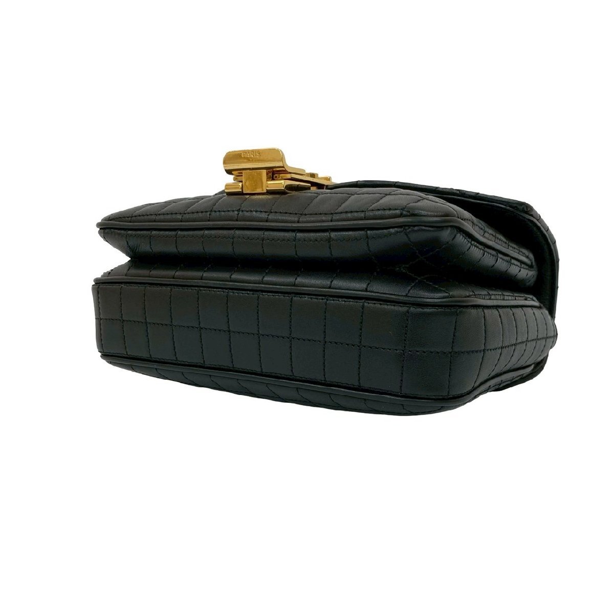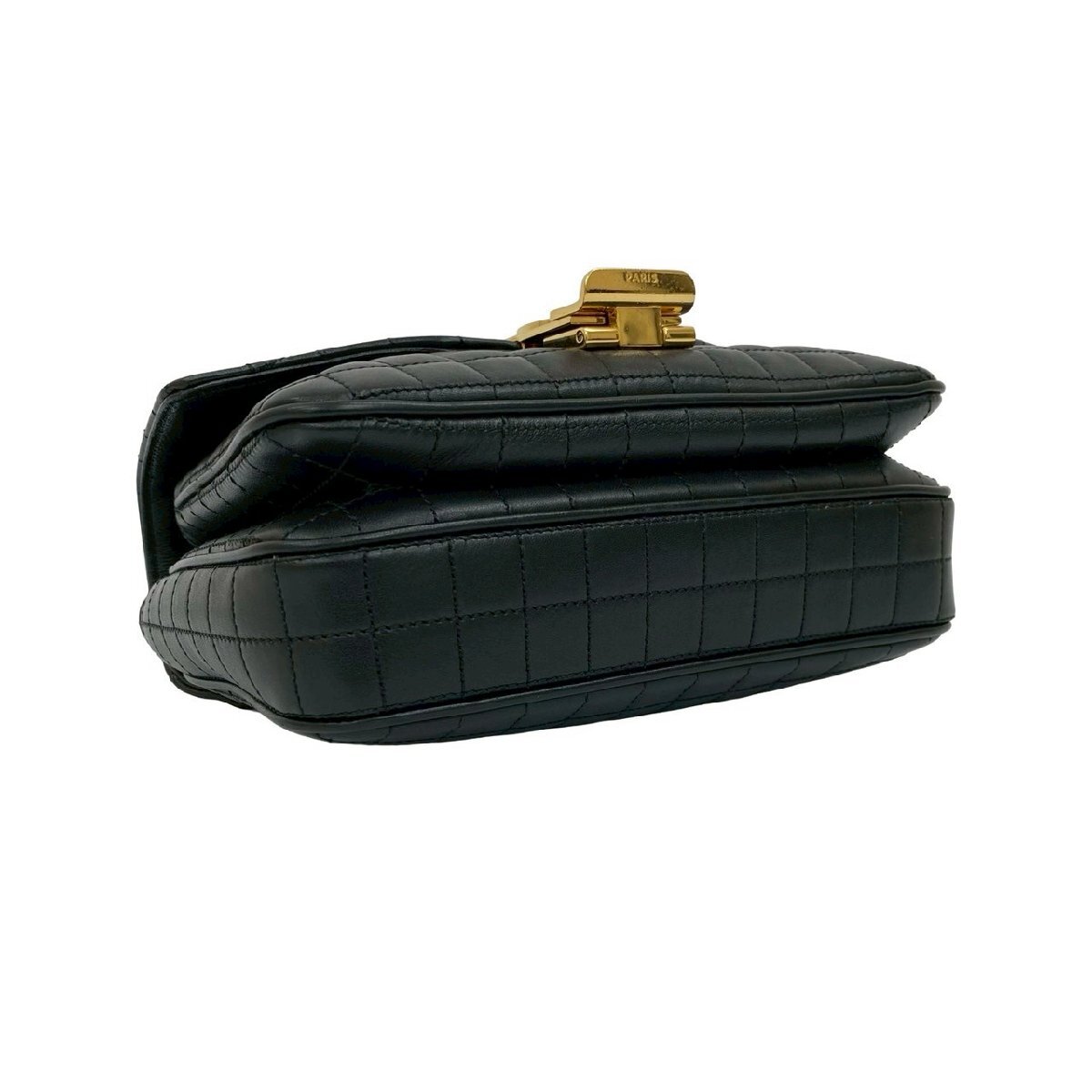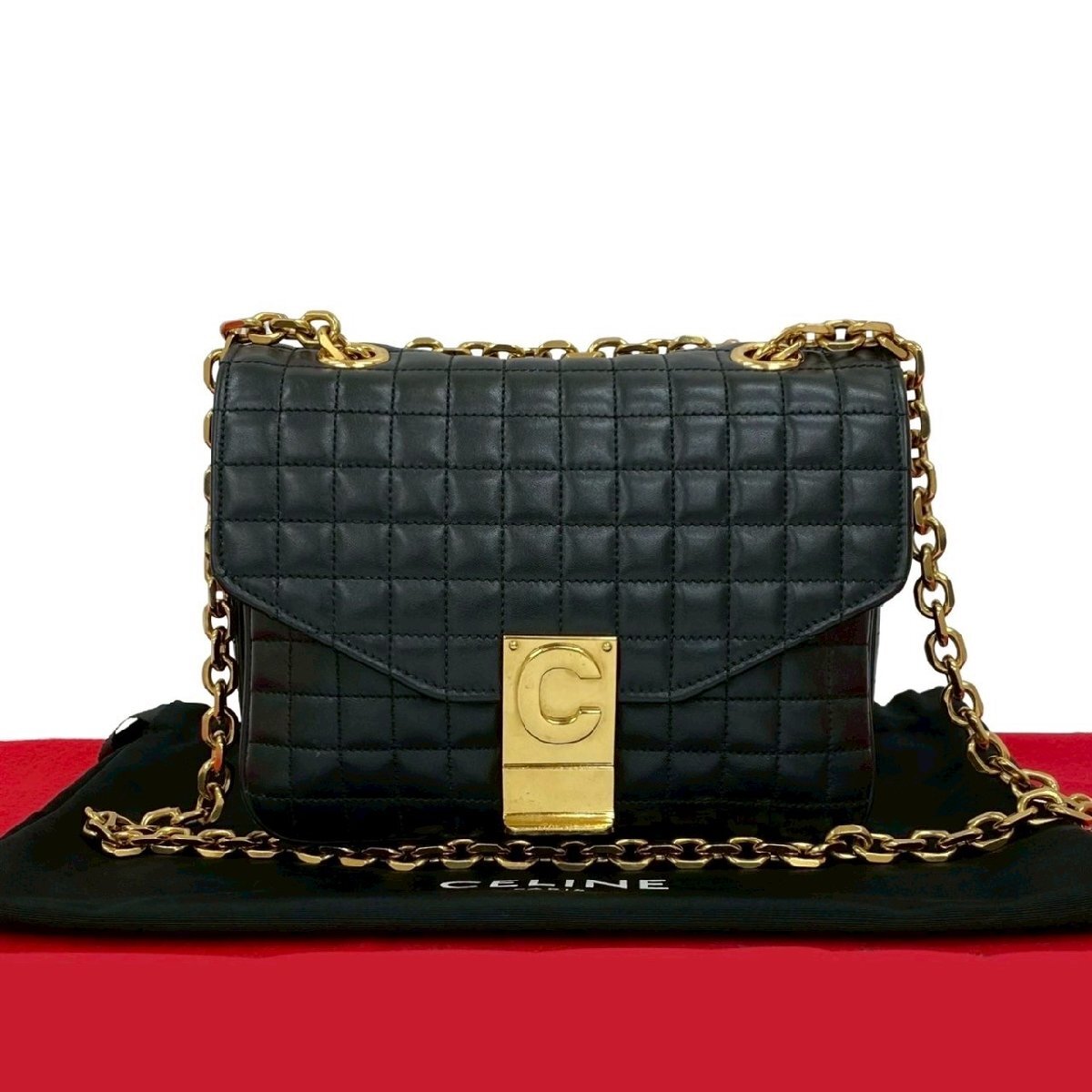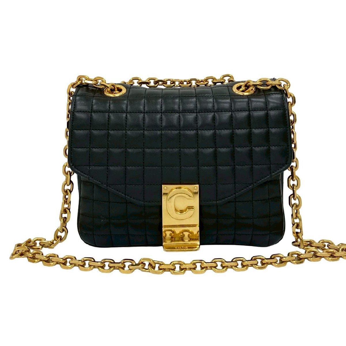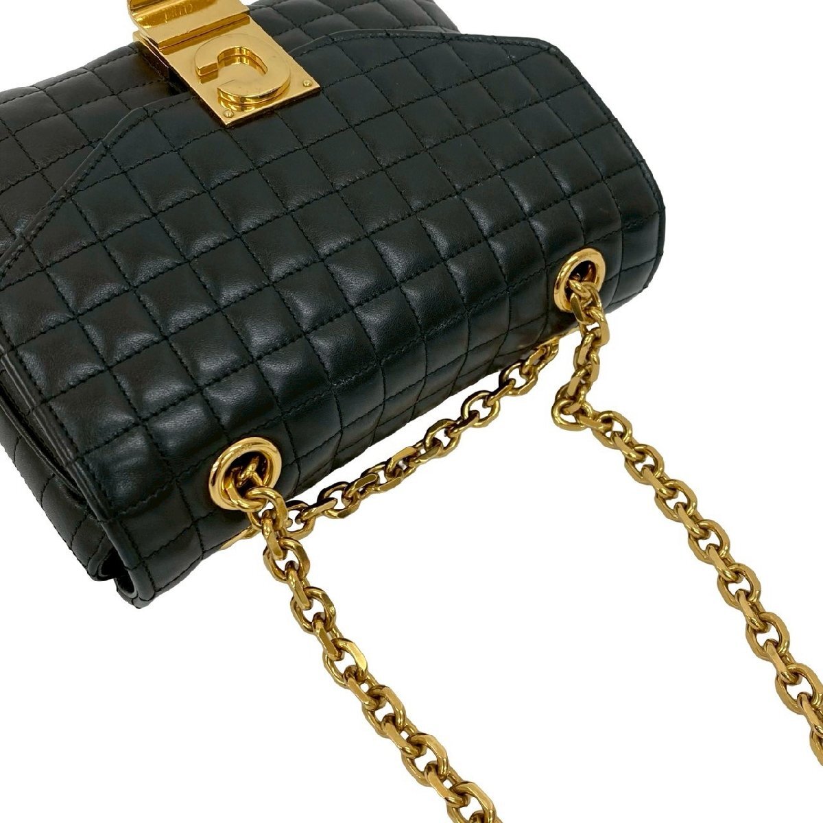 極 美品 袋付 CELINE セリーヌ C セー スモール キルテッド レザー チェーン ショルダーバッグ セミショルダーバッグ ブラック 30012
