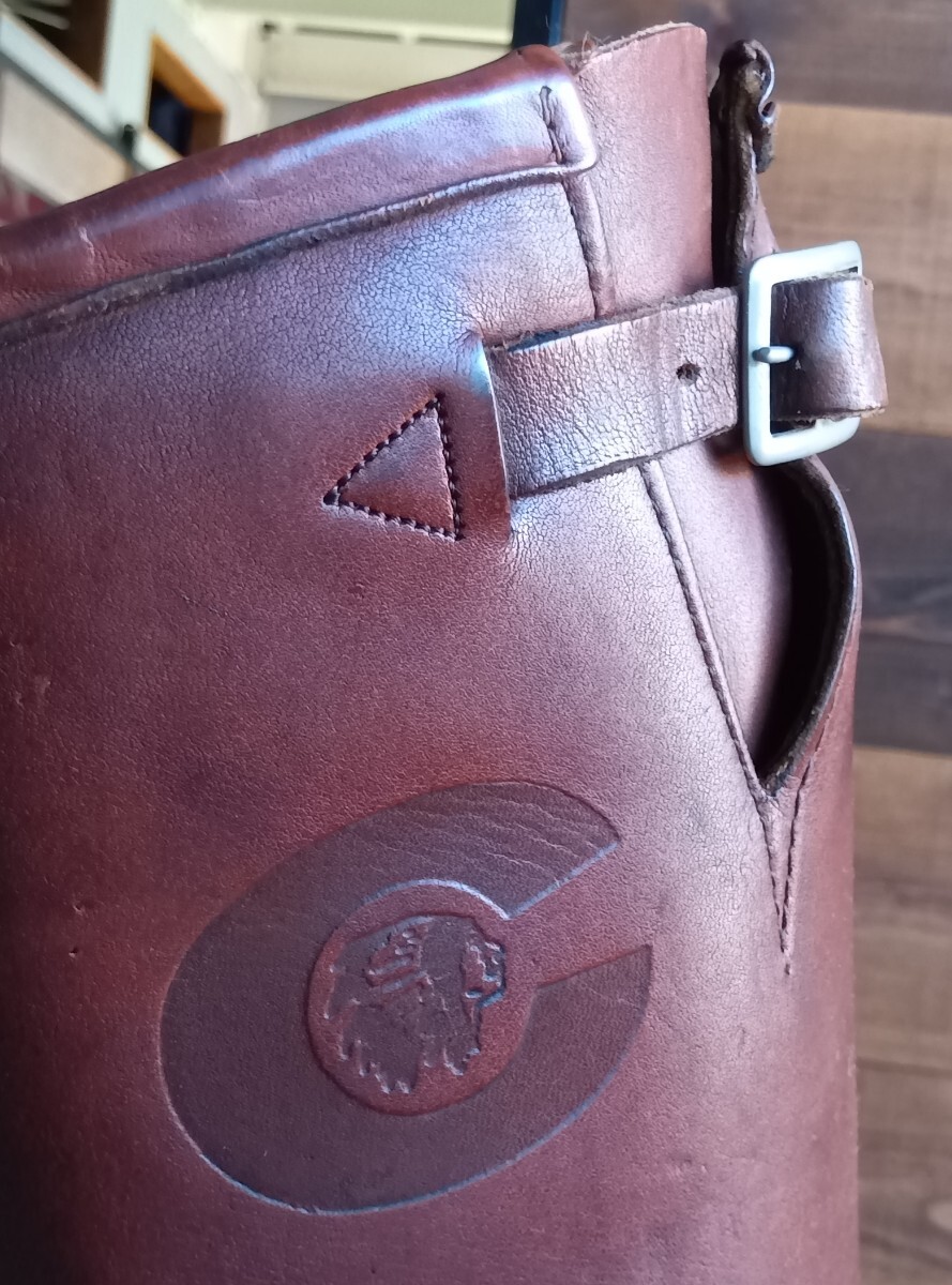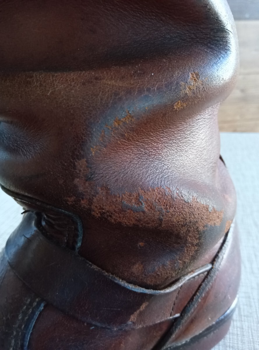 かなり深味が出た飴色になっており、使い込まれたビンテージのバンダリアンレザーのような雰囲気があります。