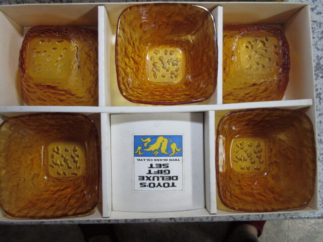 L-11新品保管品 昭和レトロ ガラス器 TOYOデラックス 小鉢 サラダボール5個セットゆうパック80