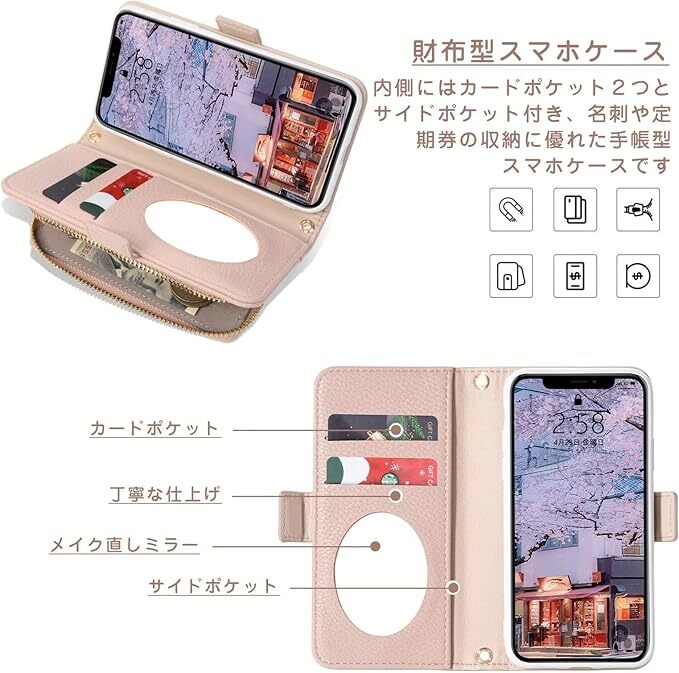 • 【ストラップ&鏡付き】ケースと同色なストラップ付き、指を通すことでスマホの落下リスクを防止、またサイズの大きい端末では安定しにくい片手操作もしやすい設計、持ち運びが便利になります。 特に、女性には必須の鏡付き!ちょっとした化粧直しや身だしなみチェックも最適です。