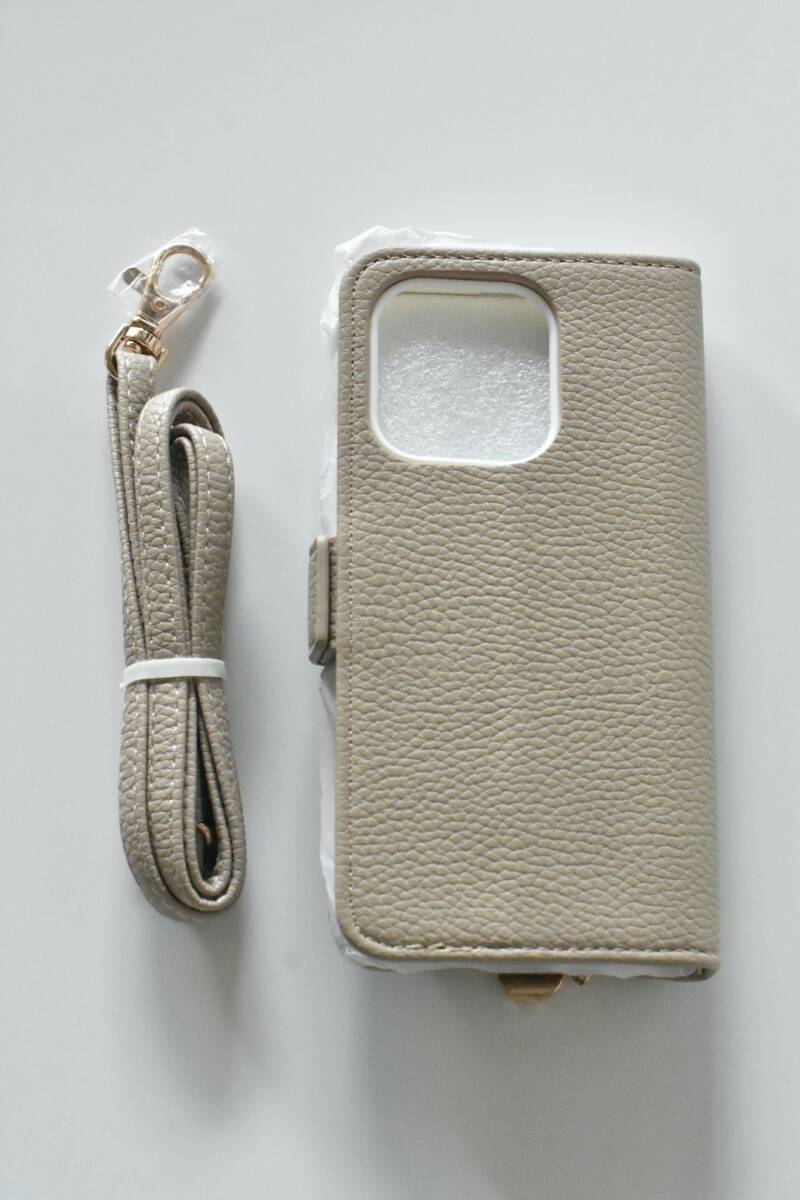 iPhone 15PRO スマホケース アイフォン 15PRO 財布型(グレーベージュ)/S642