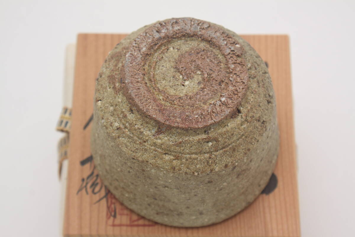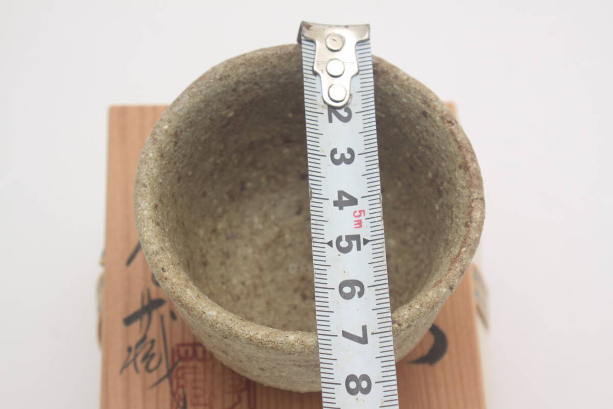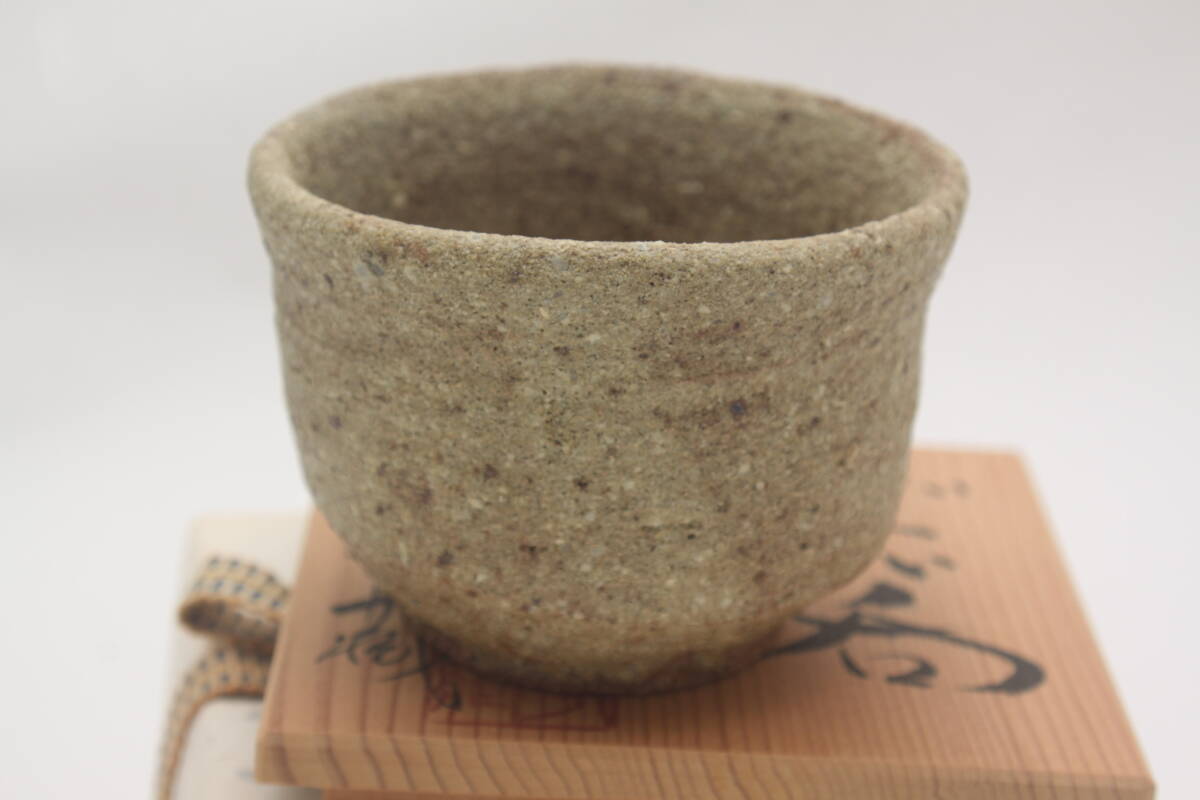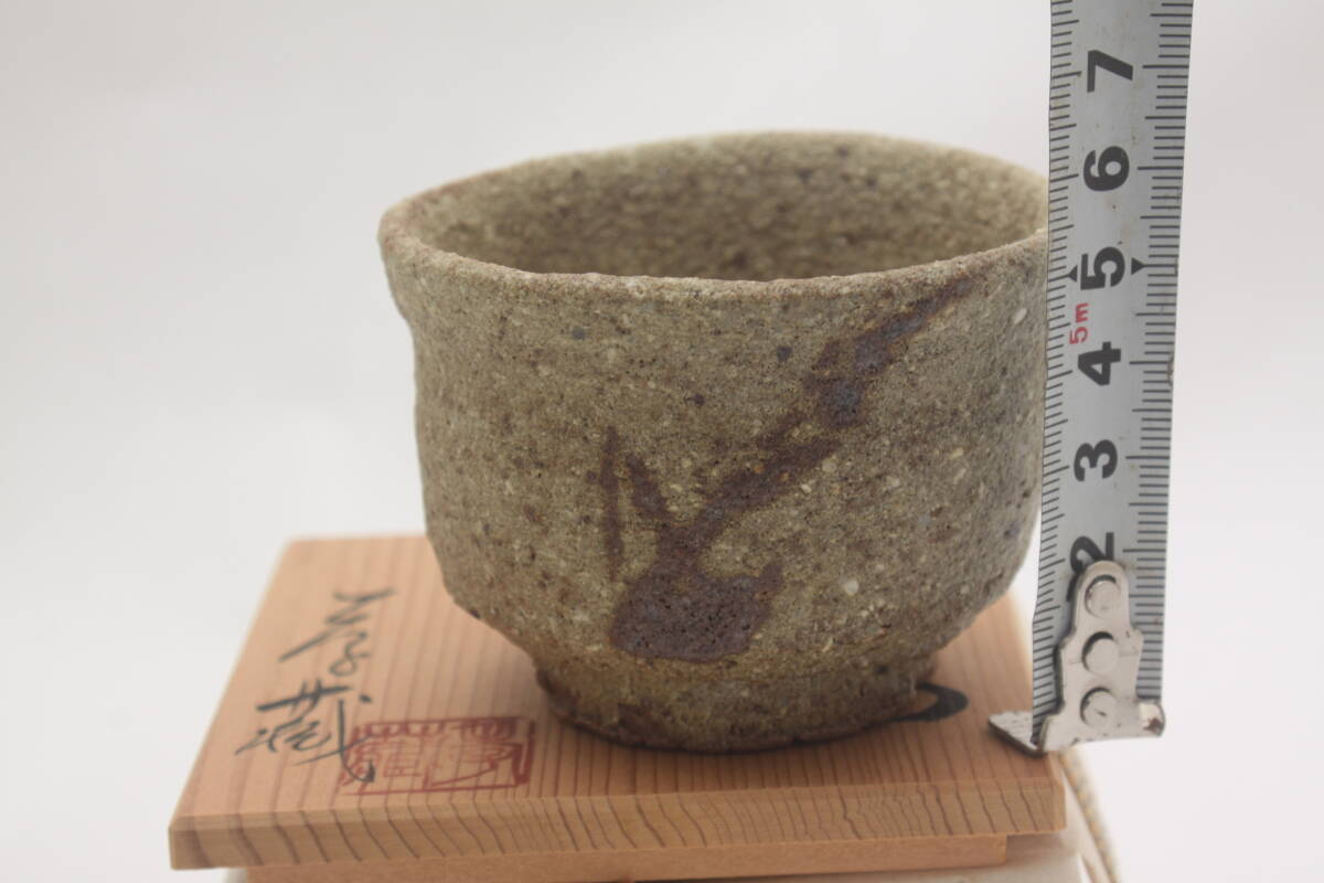3576 新品未使用 昭和63年 常滑焼 伊羅保釉 草文 山田孝蔵 ぐい呑 酒器 共箱 共布 栞