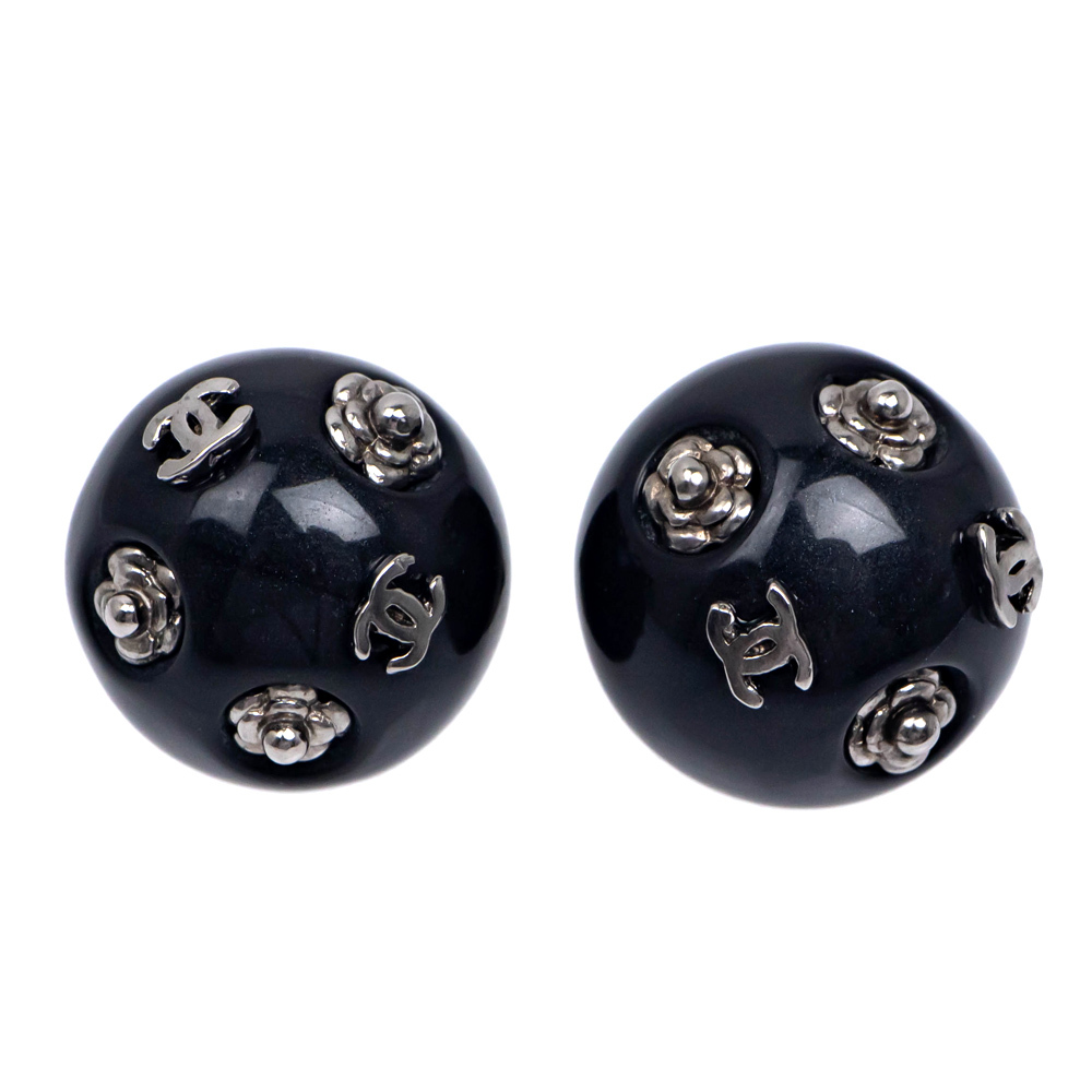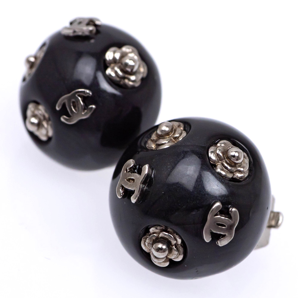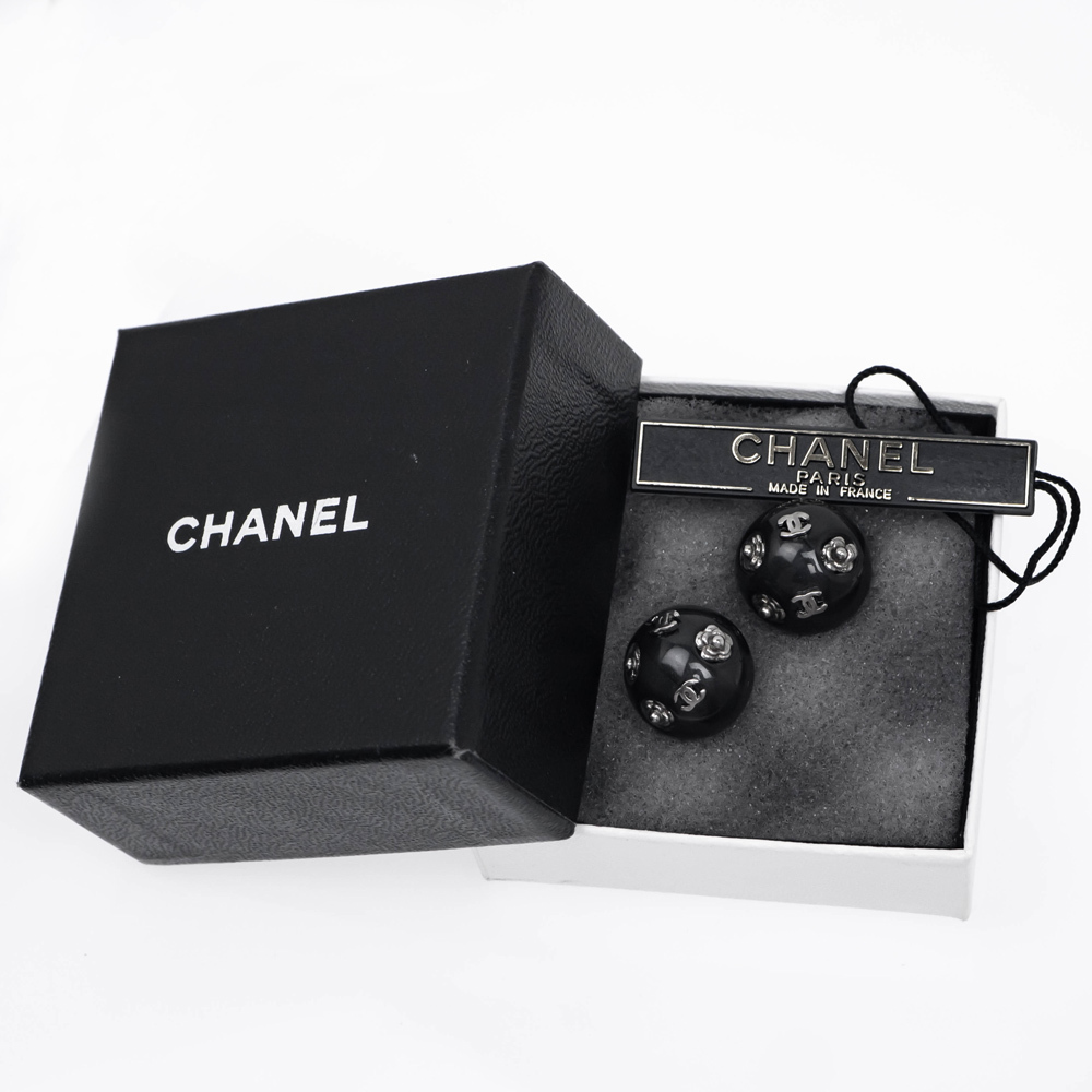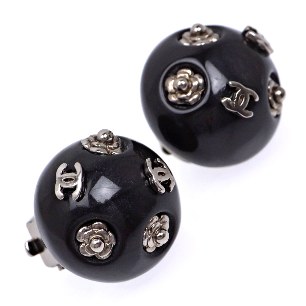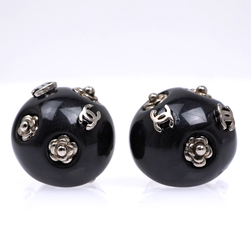 【名東】シャネル 02A イヤリング COCO ココマーク カメリア イヤリング ブラック 黒