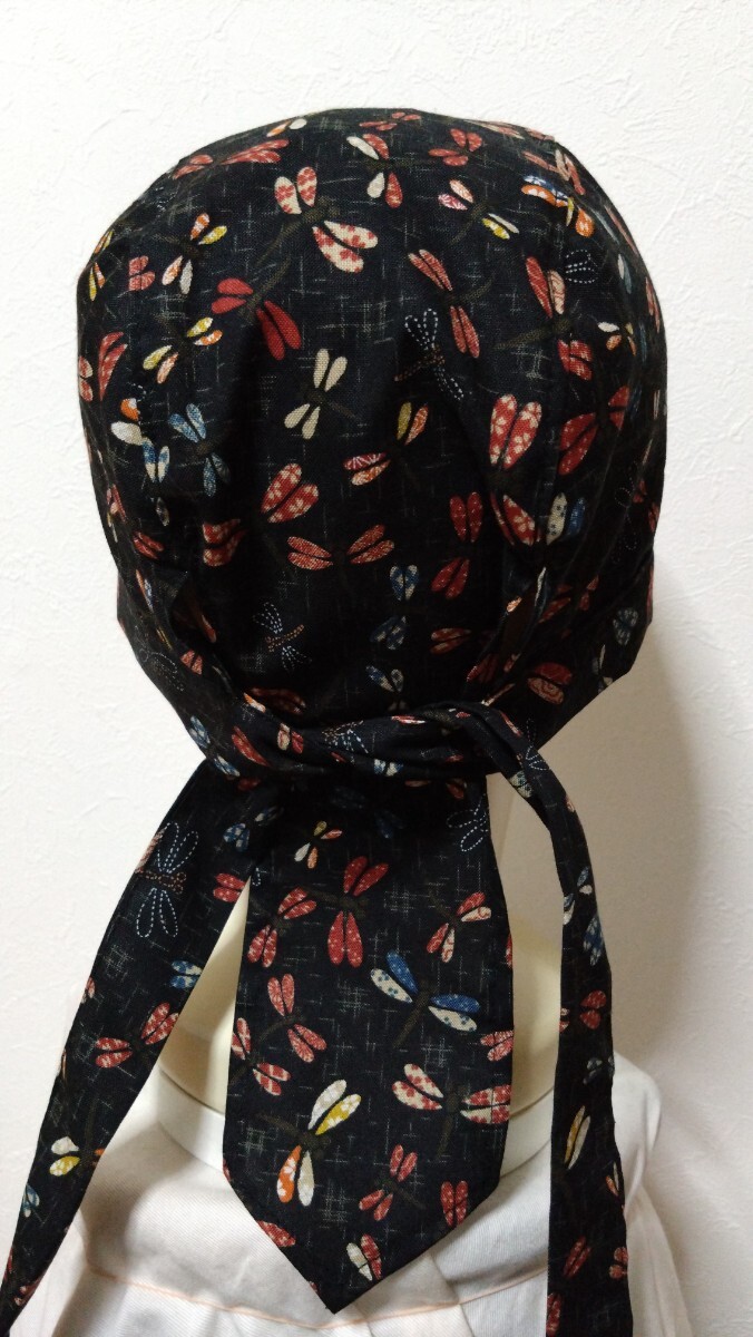 ★バンダナキャップ★ハンドメイド 和柄 井絣 とんぼ 黒