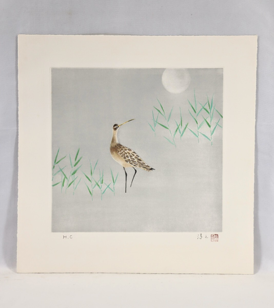★上村淳之 銅版画「ホウロクシギ」★