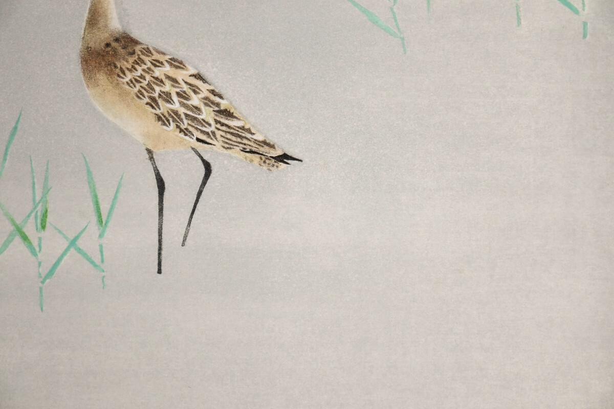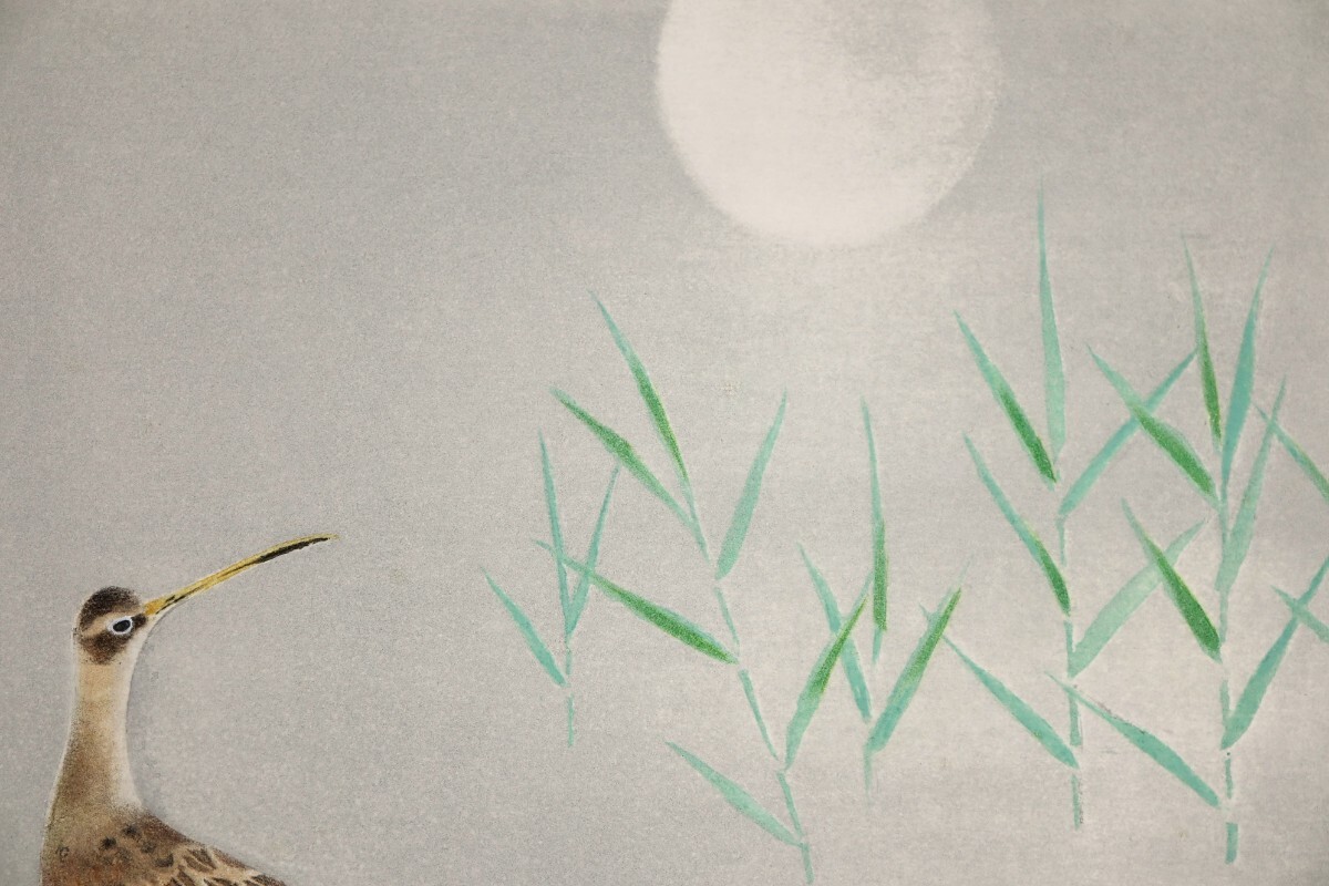 真作 上村淳之 銅版画「ホウロクシギ」画寸 27cm×26cm 京都府出身 日本芸術院会員 鋭い観察力と感性 清麗な空間を構成 静寂の中の美 11138