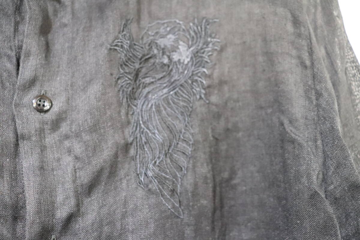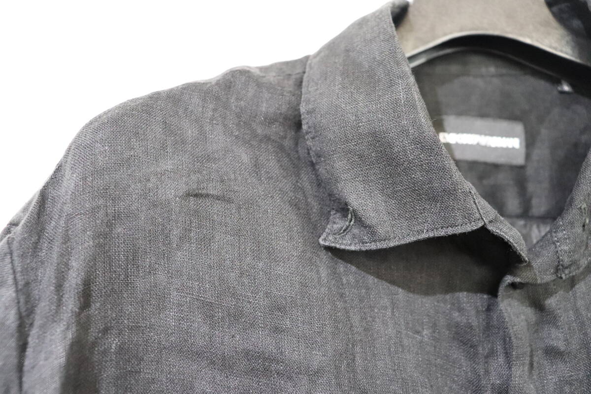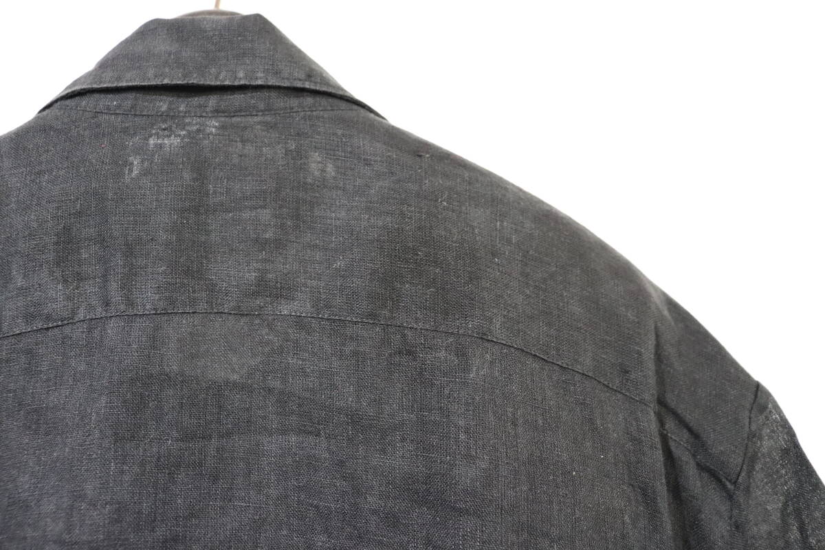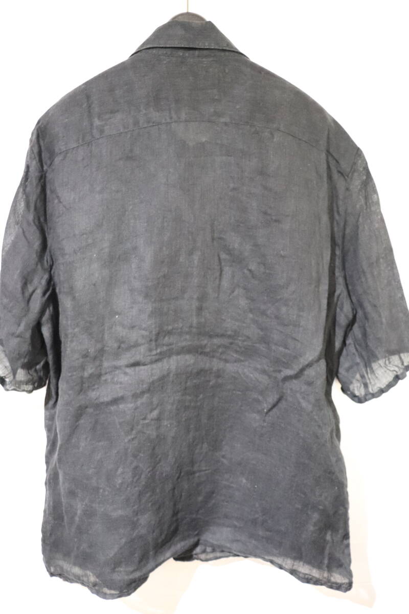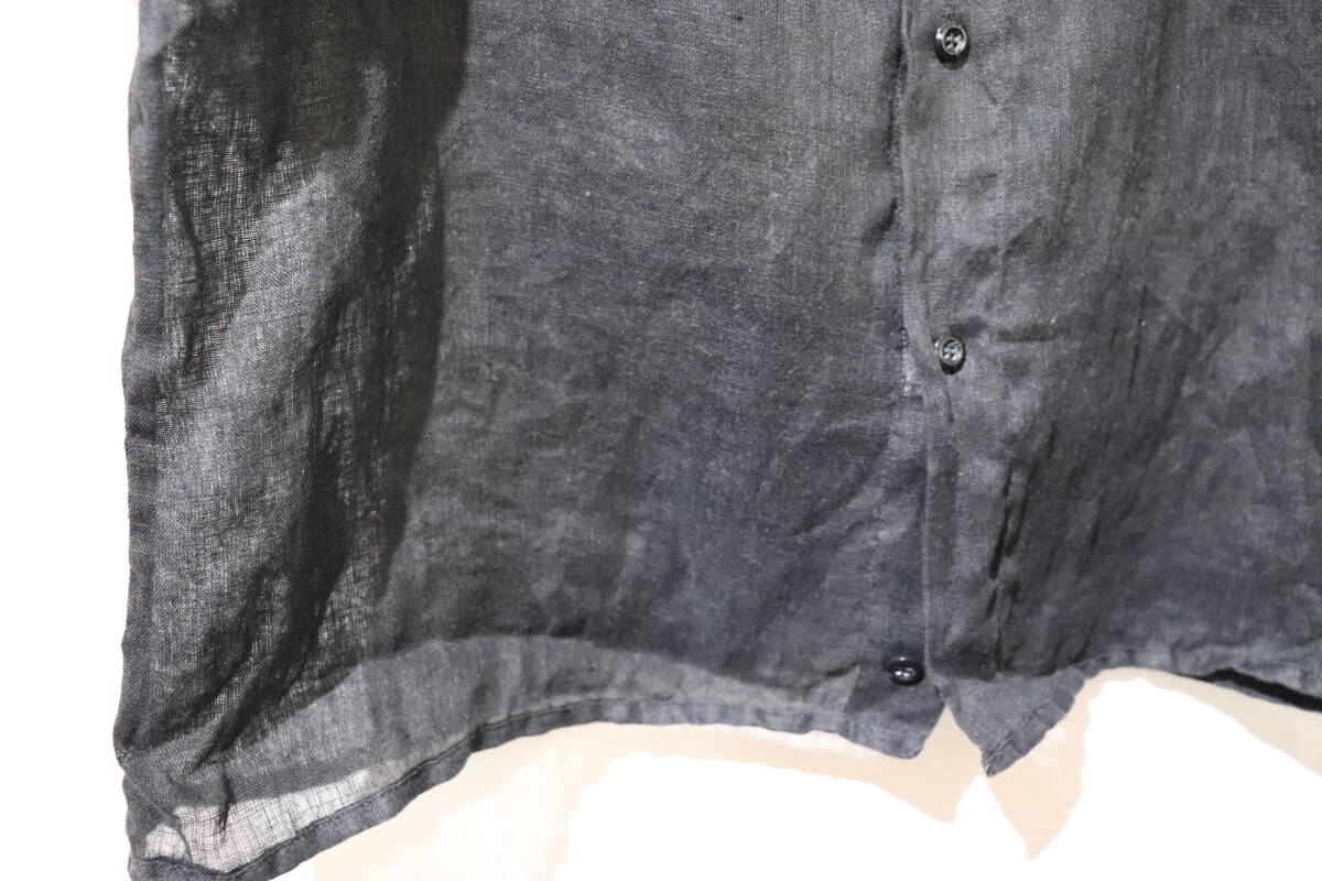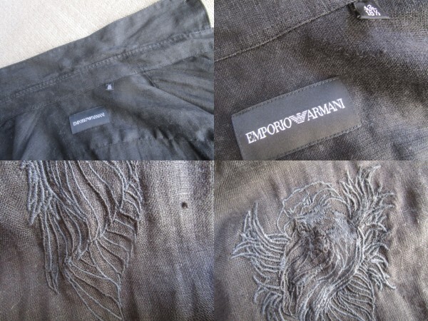 『送料レターパック円対応可能   EMPORIO ARMANI  名作   刺繍装飾リネンシャツ   メンズ42   ブラック系』