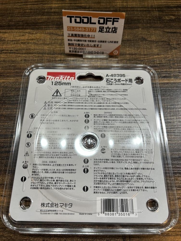 マキタ ■商品名 125mmチップソー 石こうボード用 ■型番 A-49395 |