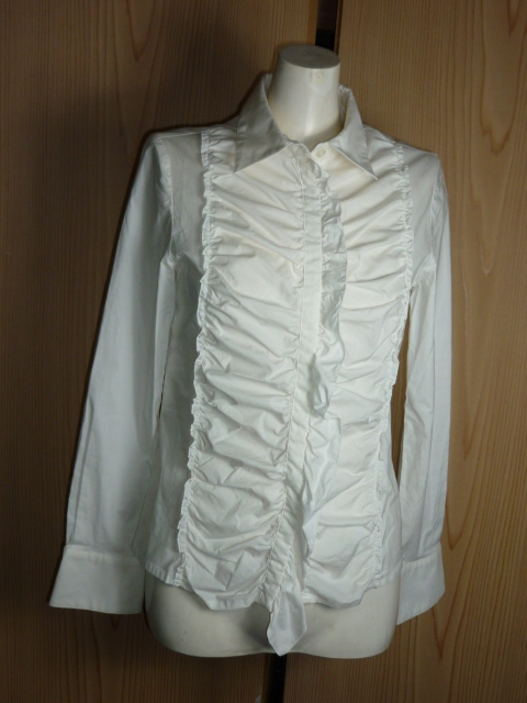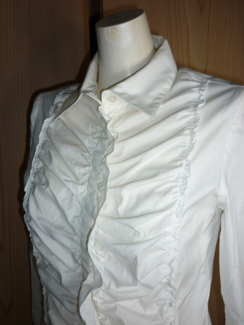 B'45★美品★ EPOCA(エポカTHEショップ) ・【綿96%・前身頃フリルデザイン・白ドレスシャツ】23000円程★商品詳細は記載文を・・