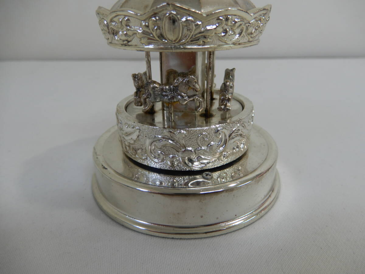 【SANKYO メリーゴーランド型 オルゴール】中古 昭和レトロ 回転 馬 虹の彼方に オブジェ おもちゃ 金属 HOBBY・カルチャー【C8-2①】0714