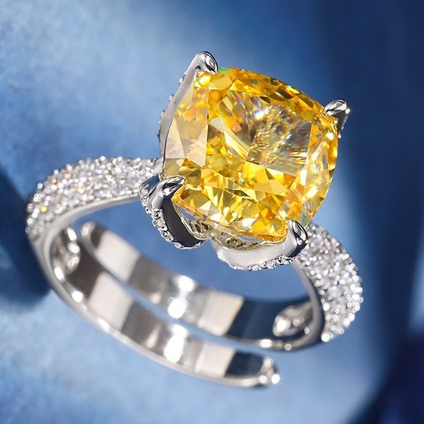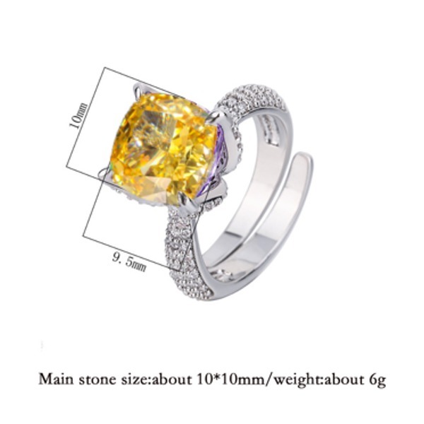 女性のためのトパーズリング 、10x10mm、高炭素ダイヤモンド 、カクテルパーティー、高級ジュエリー、トレンド