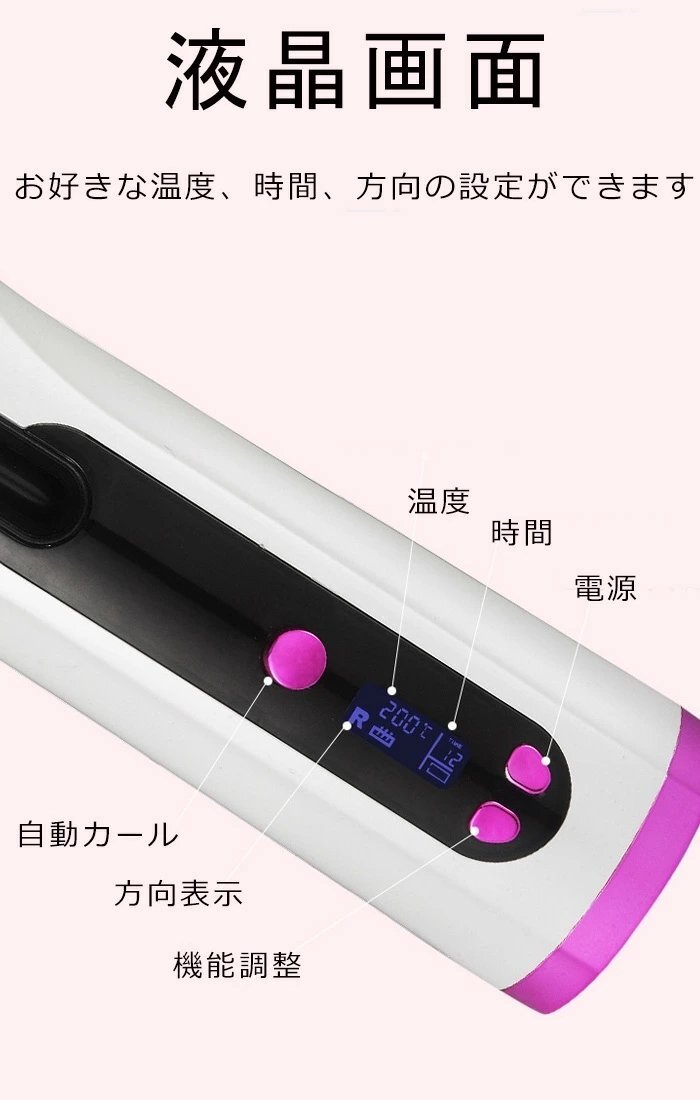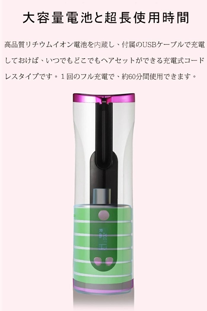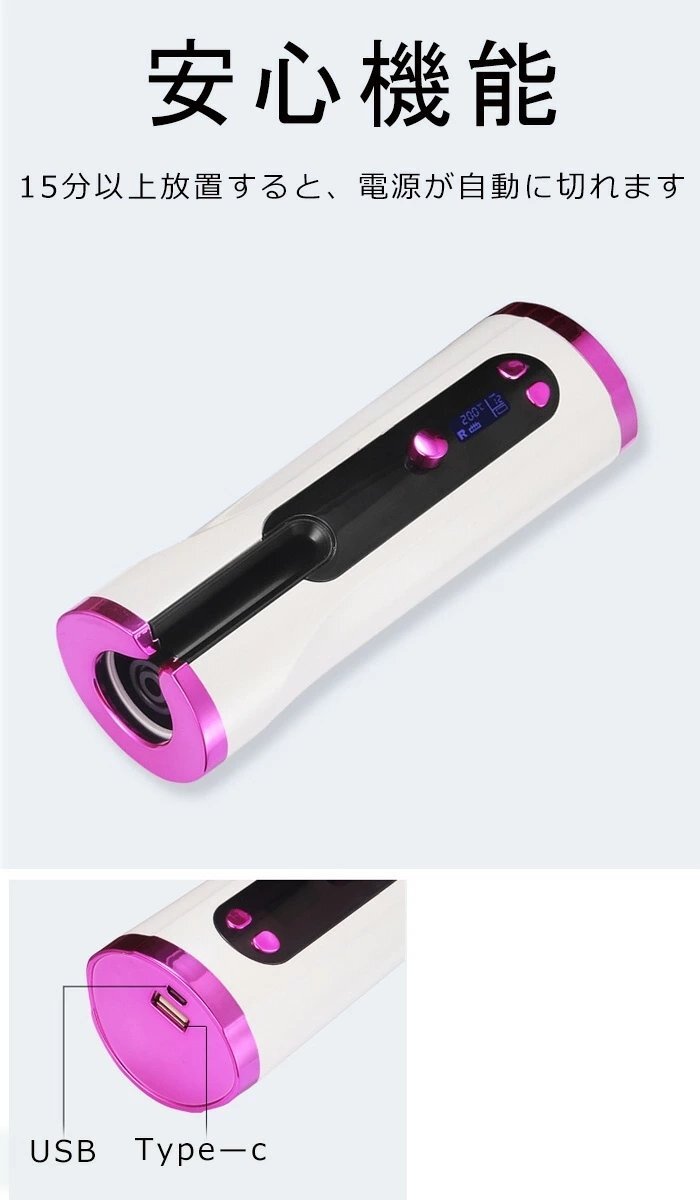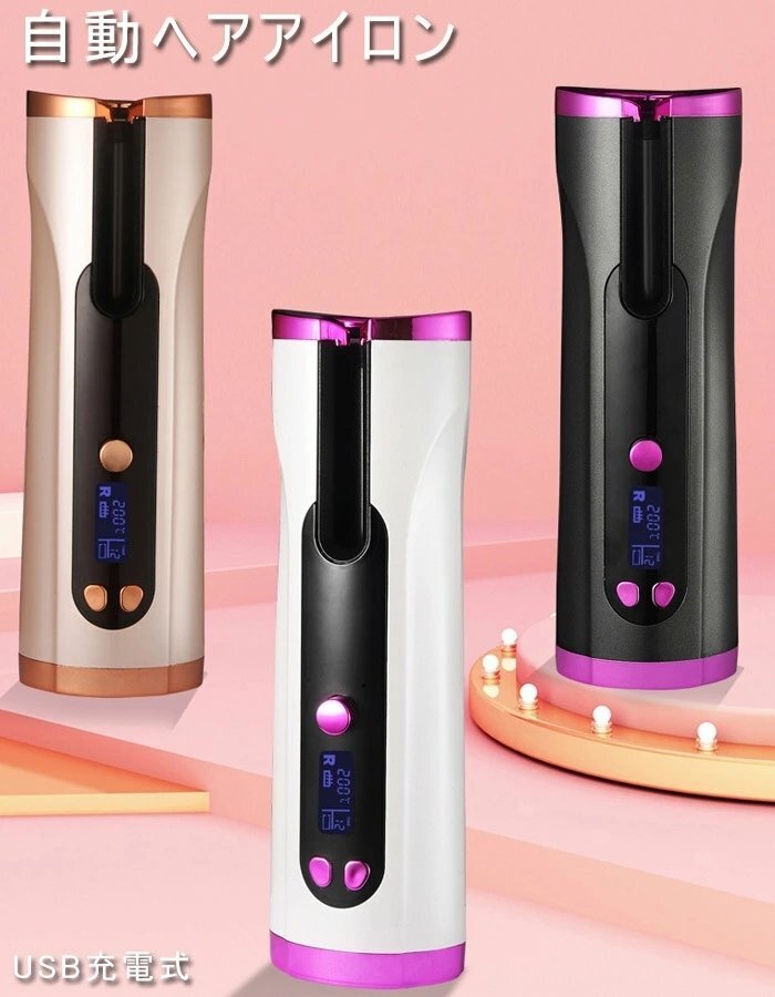 カールアイロン 自動カール ヘアアイロン コードレス オートカール 3段階温度調整 時間設定可能 自動巻き USB充電式☆カラー/3色選択/1点
